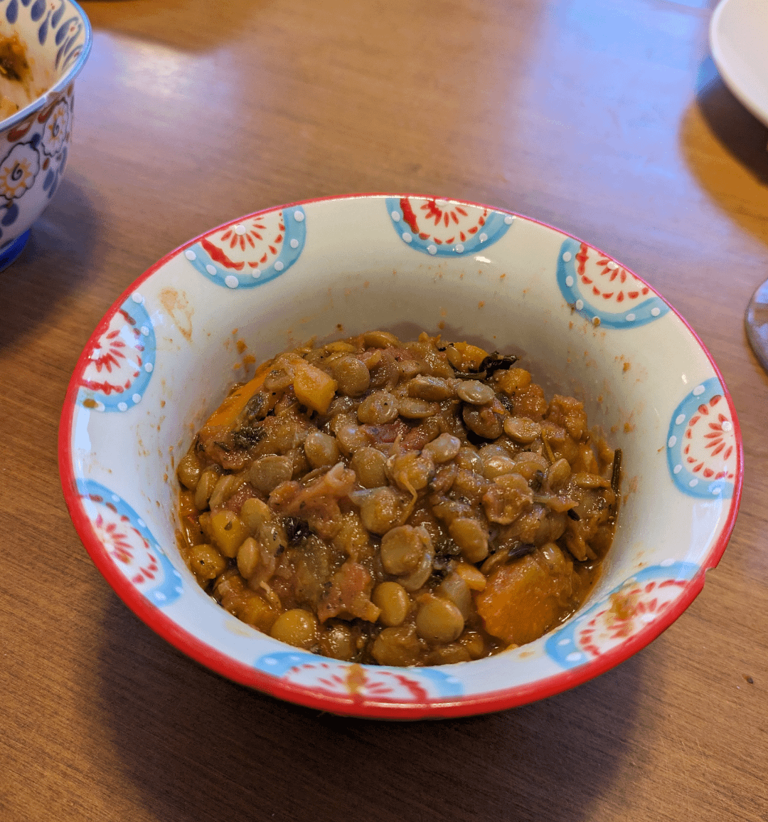 This does not look terribly tasty but it hit the spot. Full disclosure: I made this 2 months ago and threw half in the freezer then reheated it today and added a squeeze of lemon juice. It tastes even better today than it did fresh out of the slow cooker. Recipe link in comments.