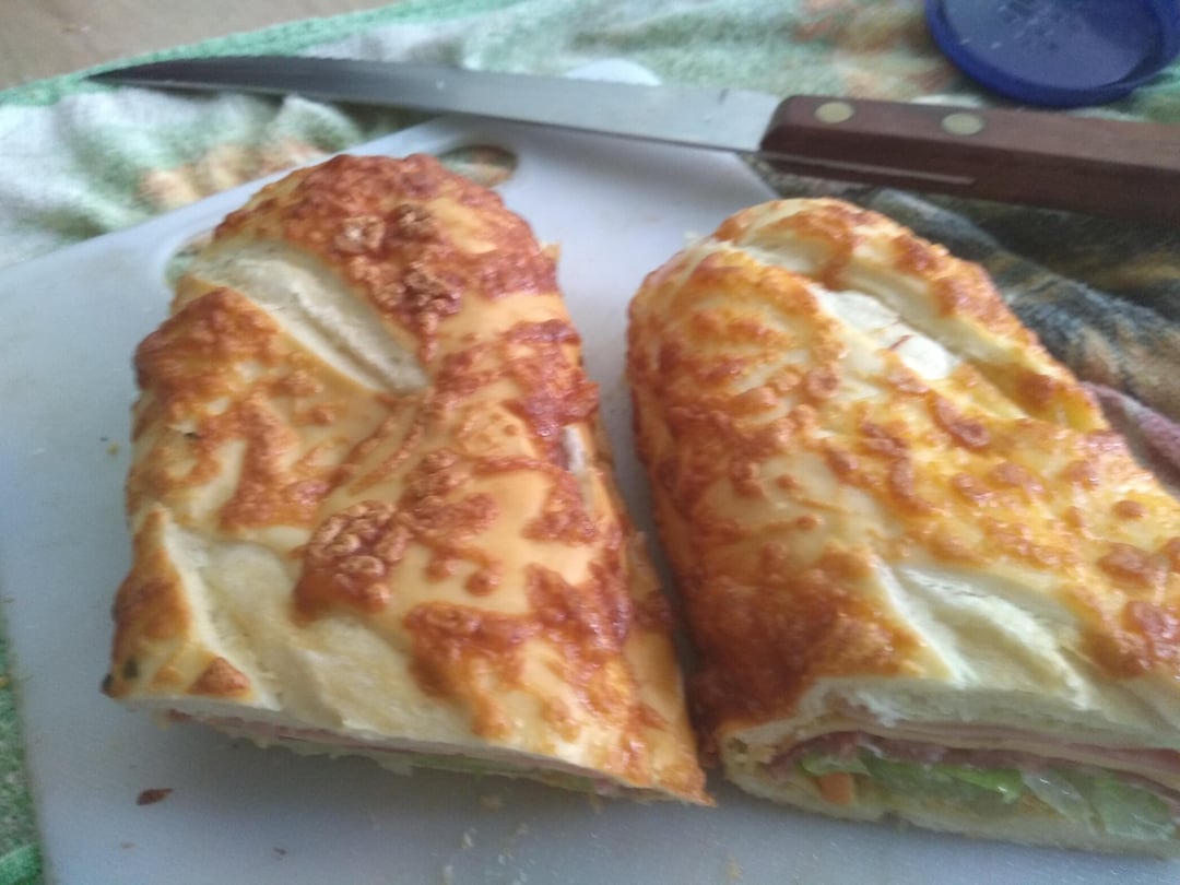 salami, cheese, giardinera, lettuce and homemade mustard on cheesy baguetteby Cool_Shallot_2755 2 Comments Vendetta_2023 2 years ago Looks good. What kind of cheese? What is the second meat? XURiN- 2 years ago Did you buy the bread like that or melt the cheese on it yourself?Write A CommentYou must be logged in to post a comment.