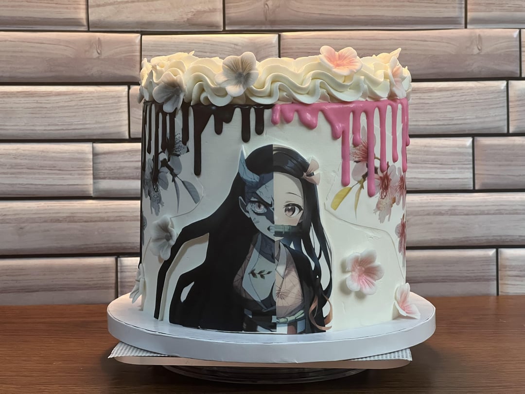 Nezuko cake I made for my daughter’s 9th birthday party. It’s a red velvet cake with a Swiss merengue buttercream, and the filling is a no bake cheese cake sprinkled with mini chocolate chips between the layers. It was a big hit and the kids ate the entire thing! I’m just a home baker. I don’t sell cakes. Just make them for family and friends, but I was proud of this one.