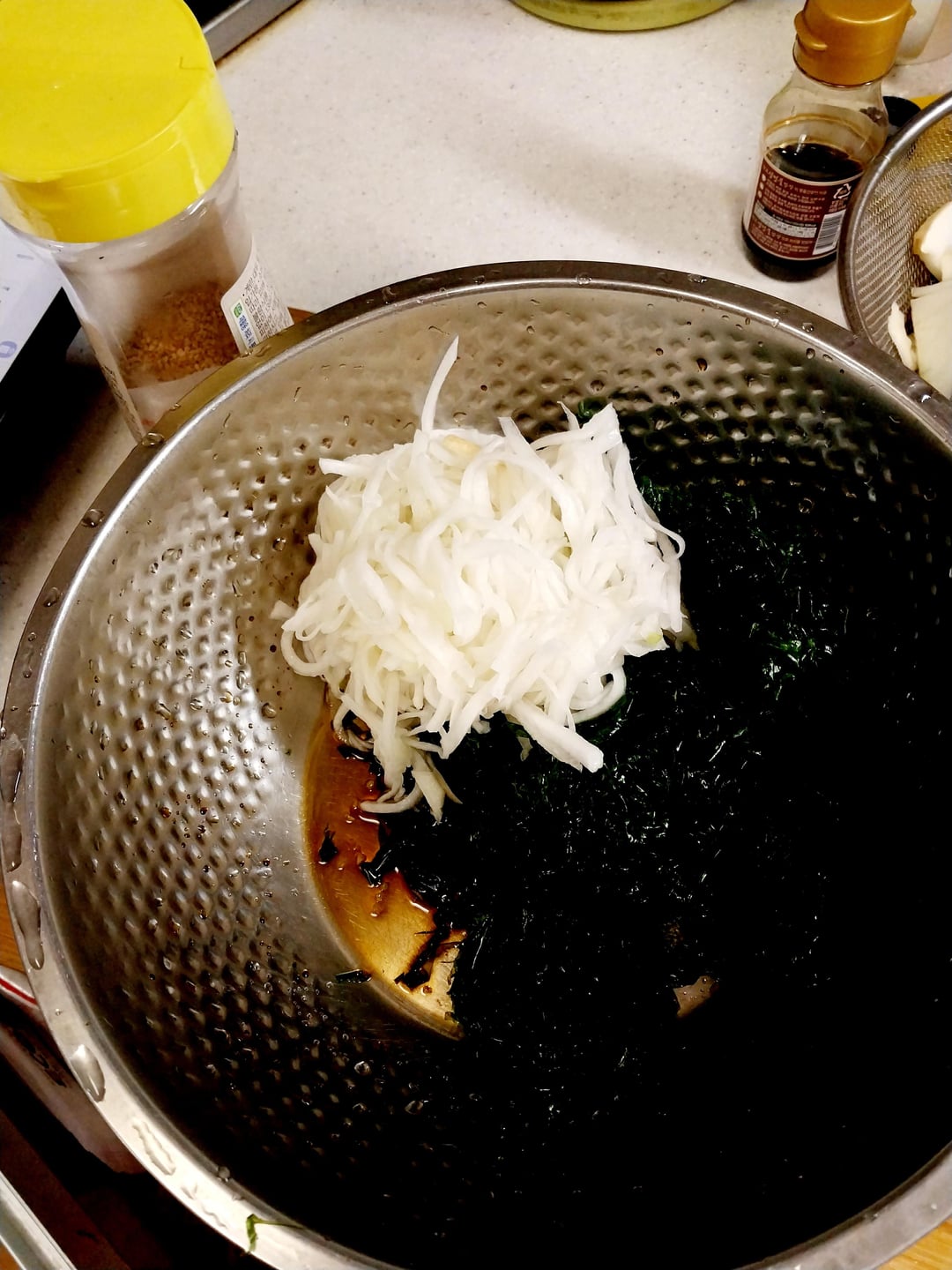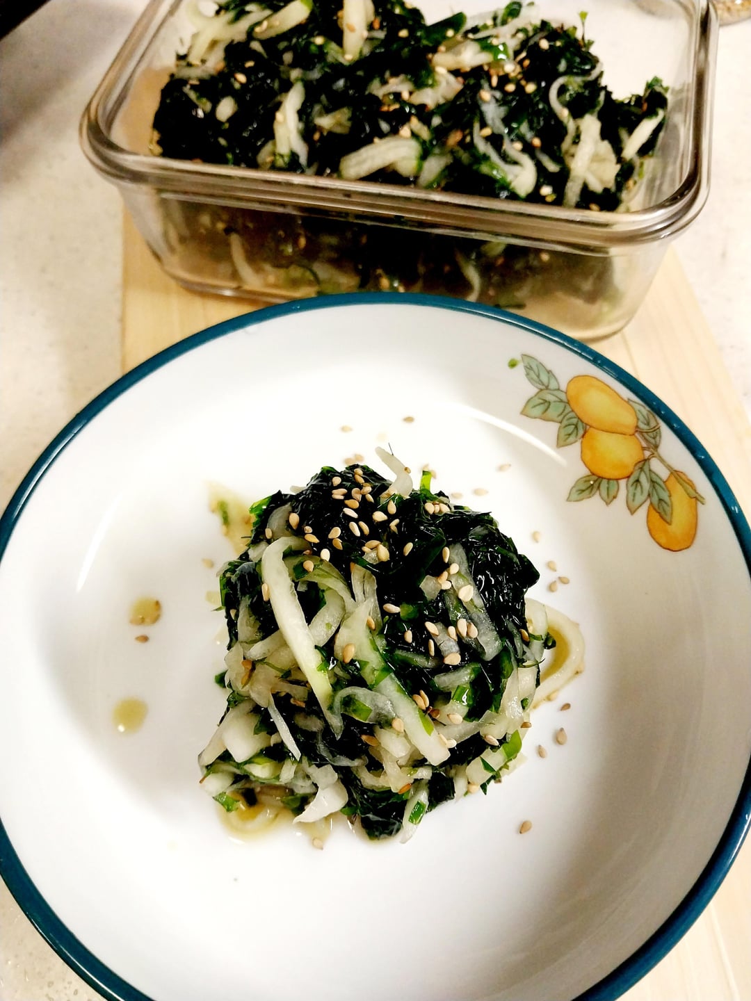 I made seasoned salad and pancakes with seaweed parae and bomdong. Spring food is refreshing and light.