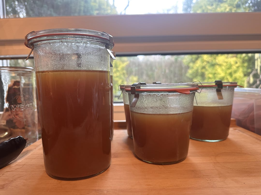 I completed the canning weekend by cooking and canning chicken stock. I roasted the bones, and also used some old rotisserie chicken corpses, so it’s a little dark. The kids usually love to drink soup, but they were not the biggest fans of it and said it was “too strong”.