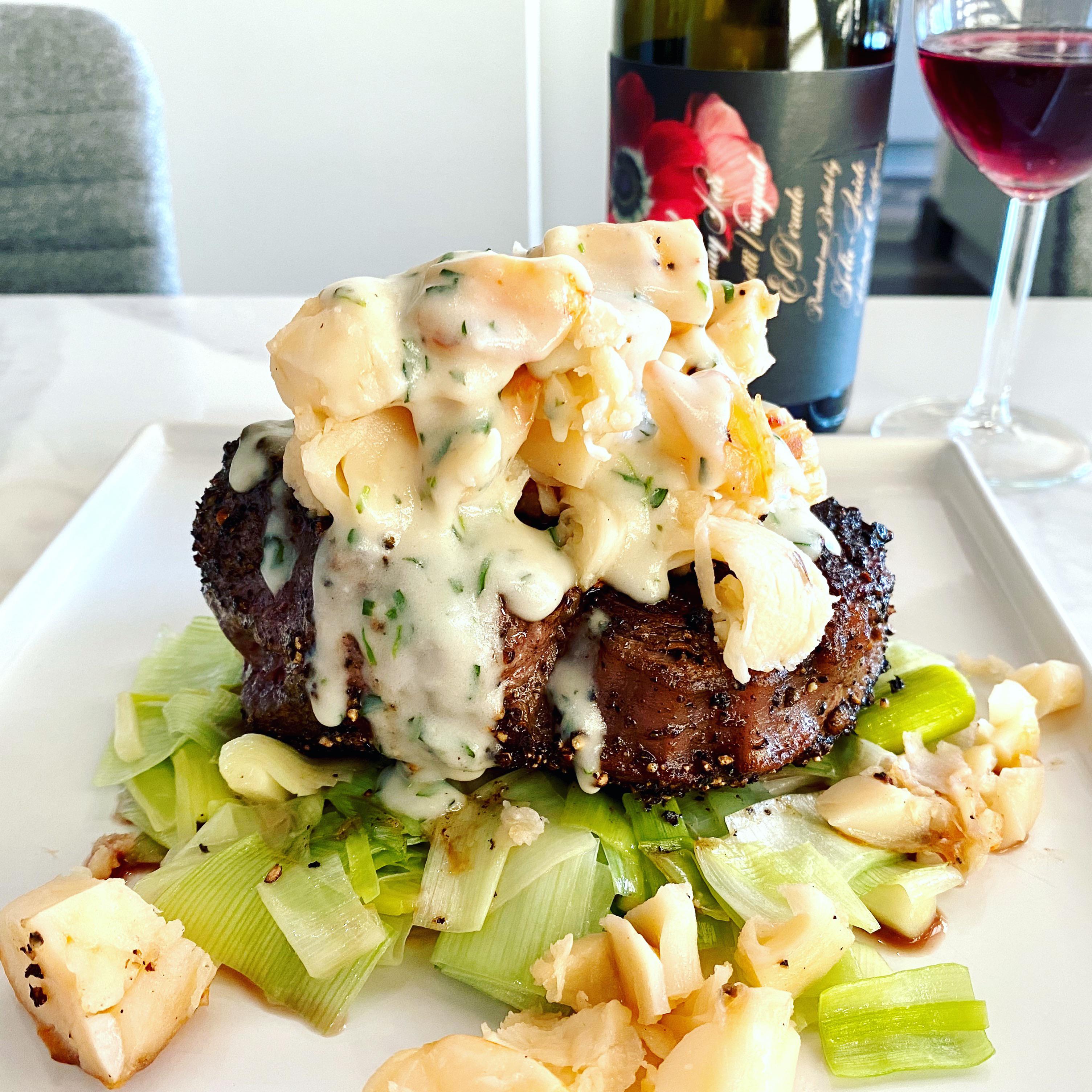 Lobster Surf and Turf with Leeks and Lobster Cream Sauce