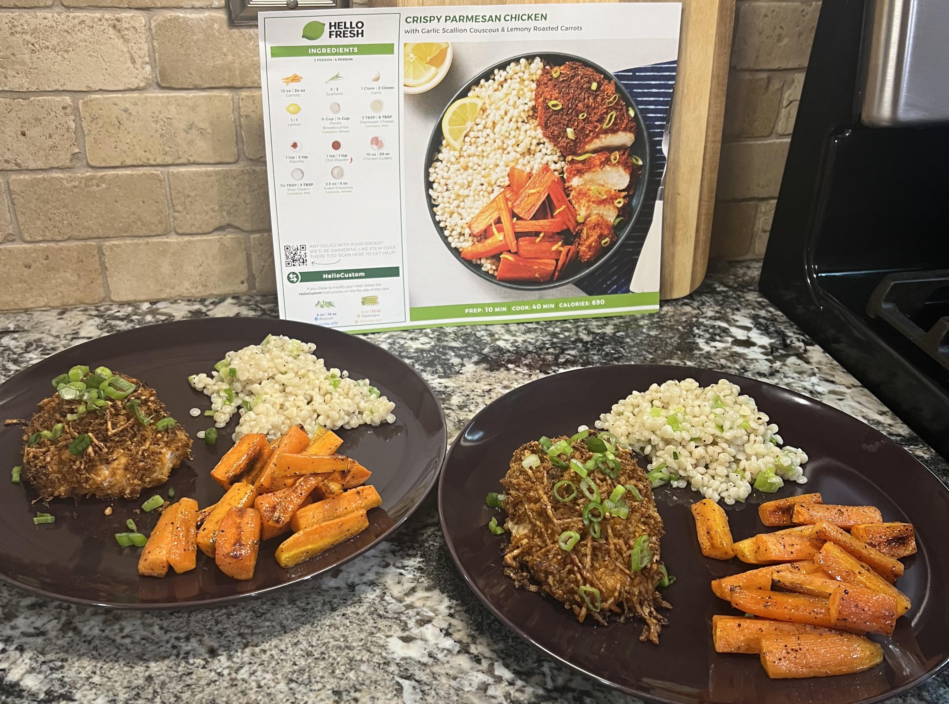 Very good!! We always like the chicken dishes and this one was no different. The cous cous was garlicky and buttery, and the carrots with lemon juice and lemon zest was a nice change up of flavor for the HF classic side of carrots.