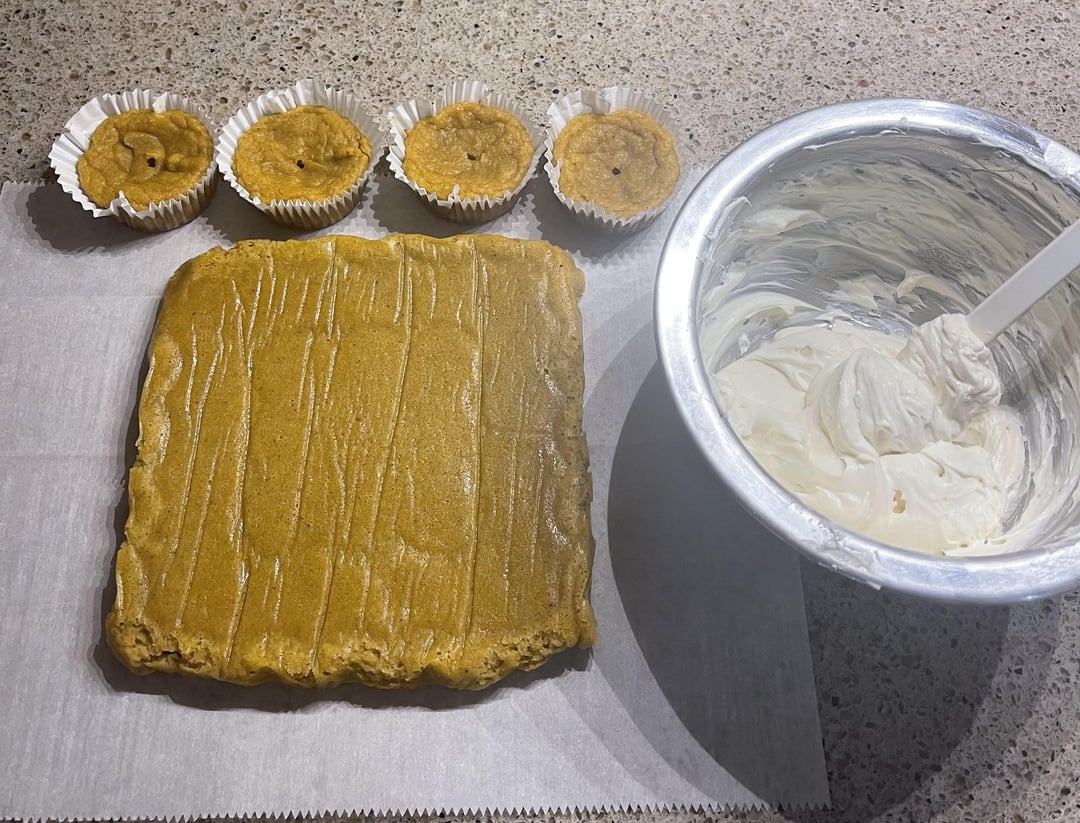 6. Transfer the batter to the lined baking pan and smooth the top. Bake for30-35 minutes, until an inserted toothpick comes out clean. Cool completely.
