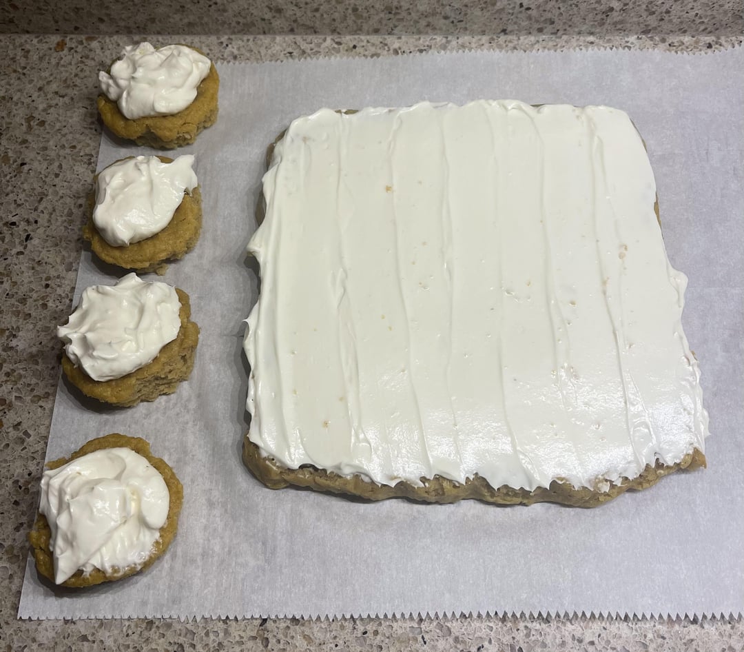 7. To make the frosting, use a hand mixer to beat together the cream cheese, powdered Besti, and vanilla, until smooth. (You can thin it out with a little milk or cream if you’d like.) Let the bars cool completely before frosting and cutting.