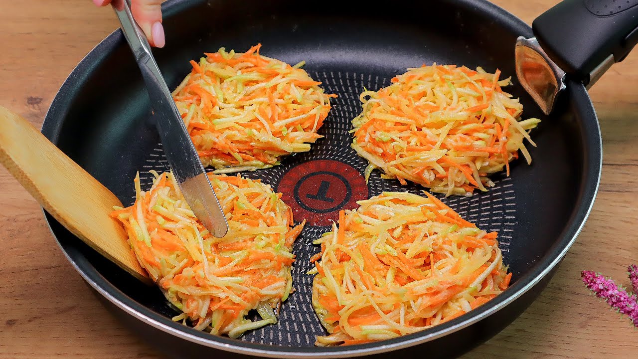 Recipe 1. 1 zucchini. Pull off the skin. I use a special grater. 1 carrot. Friends, write in the comments if you liked this recipe! 1 potato. 2 eggs. Salt. Flour 2 tablespoons. Mix everything thoroughly. sunflower oil. Fry for 4 minutes on each side. This is a very tasty and easy recipe!