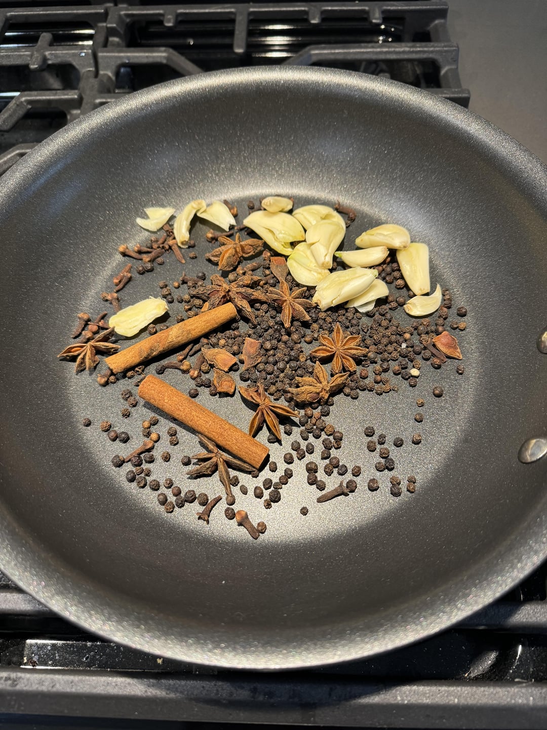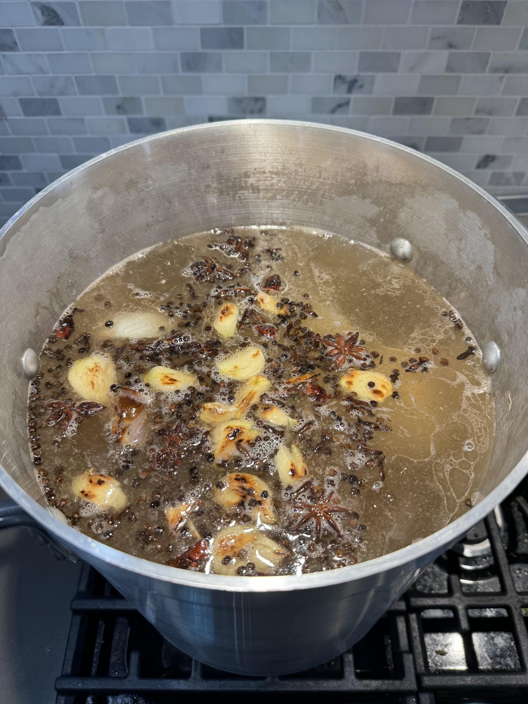tip, wrap your spices in a cheese cloth so it becomes a kinda of spice teabag and just weigh it down with something. Then it’s easier to just take out