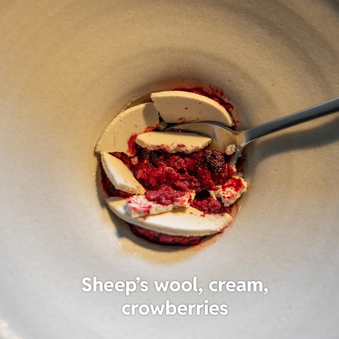 – Sheep’s wool (you read that right) with cream and crowberries: A dessert from the Faroe Islands