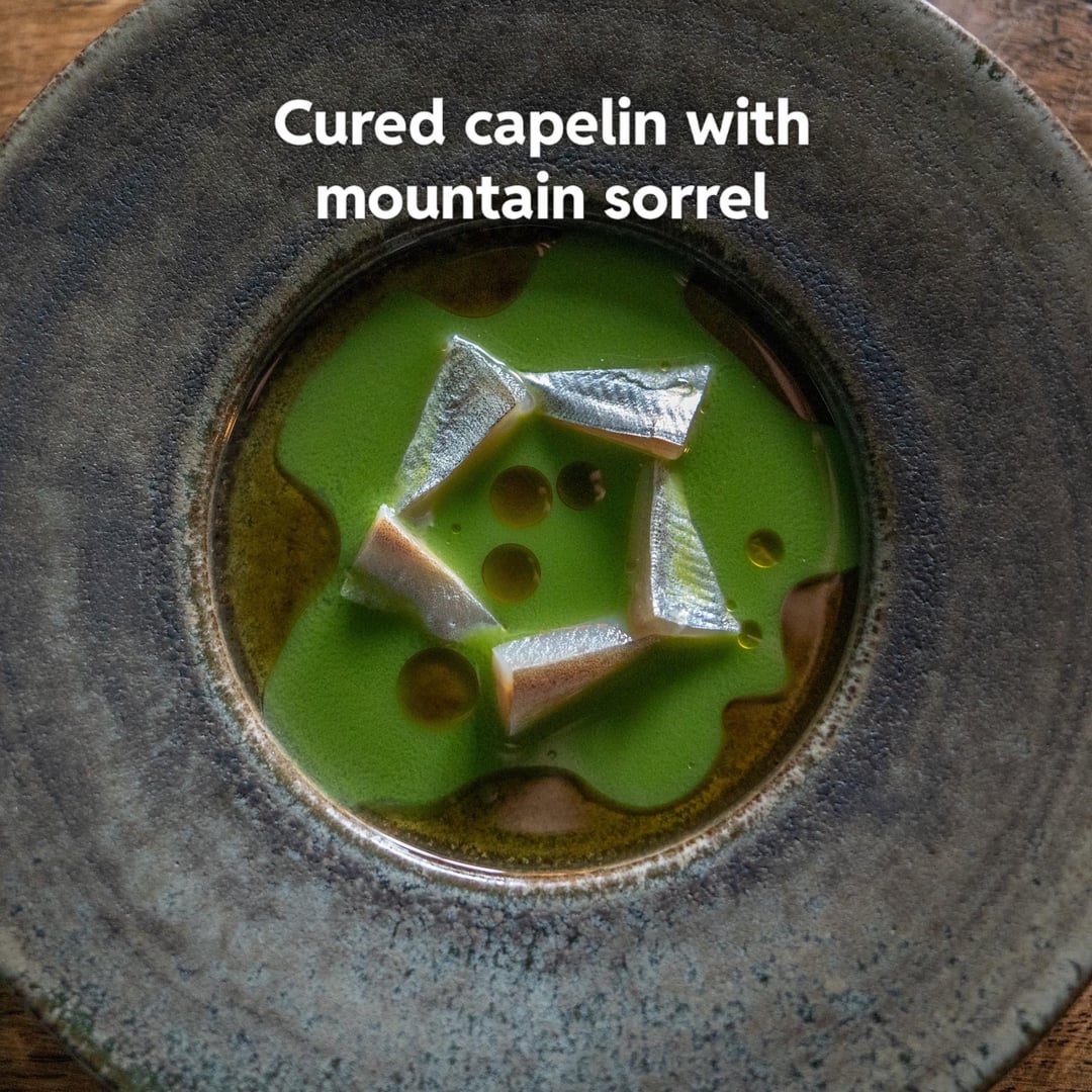 – Capelin (or known in Greenland as ammassat) with mountain sorrel: tender and acidic