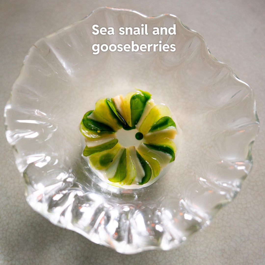 – Sea snail and fermented green gooseberries: Tastes very New Nordic