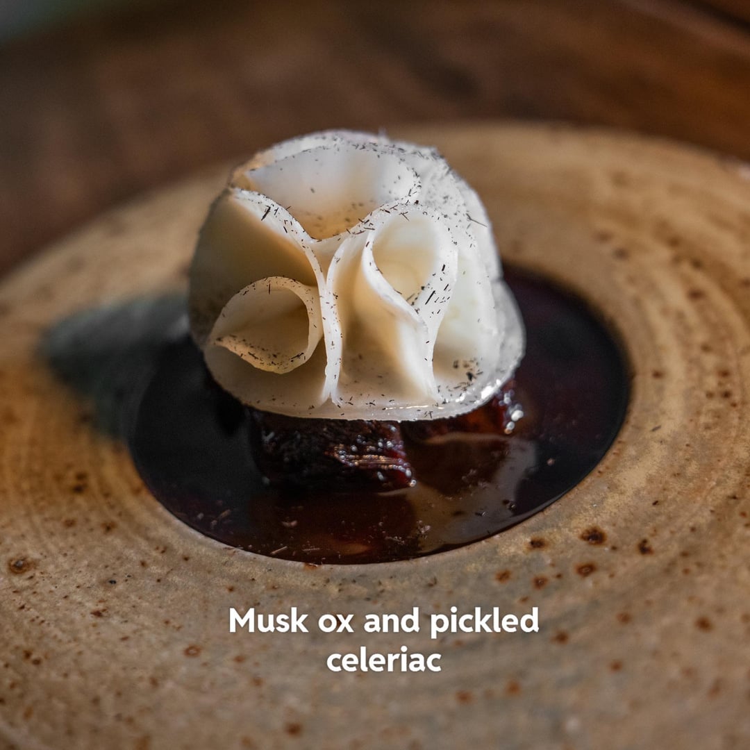– Musk ox and pickled celeriac: A lean meat that reminded me of braised beef shank in Asian cuisine.