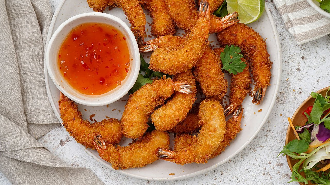 This crispy deep-fried coconut prawns recipe is made with succulent king prawns, crunchy coconut coating, and 3 ingredients homemade dipping sauce. Perfect as an appetizer or party snack for all occasions.