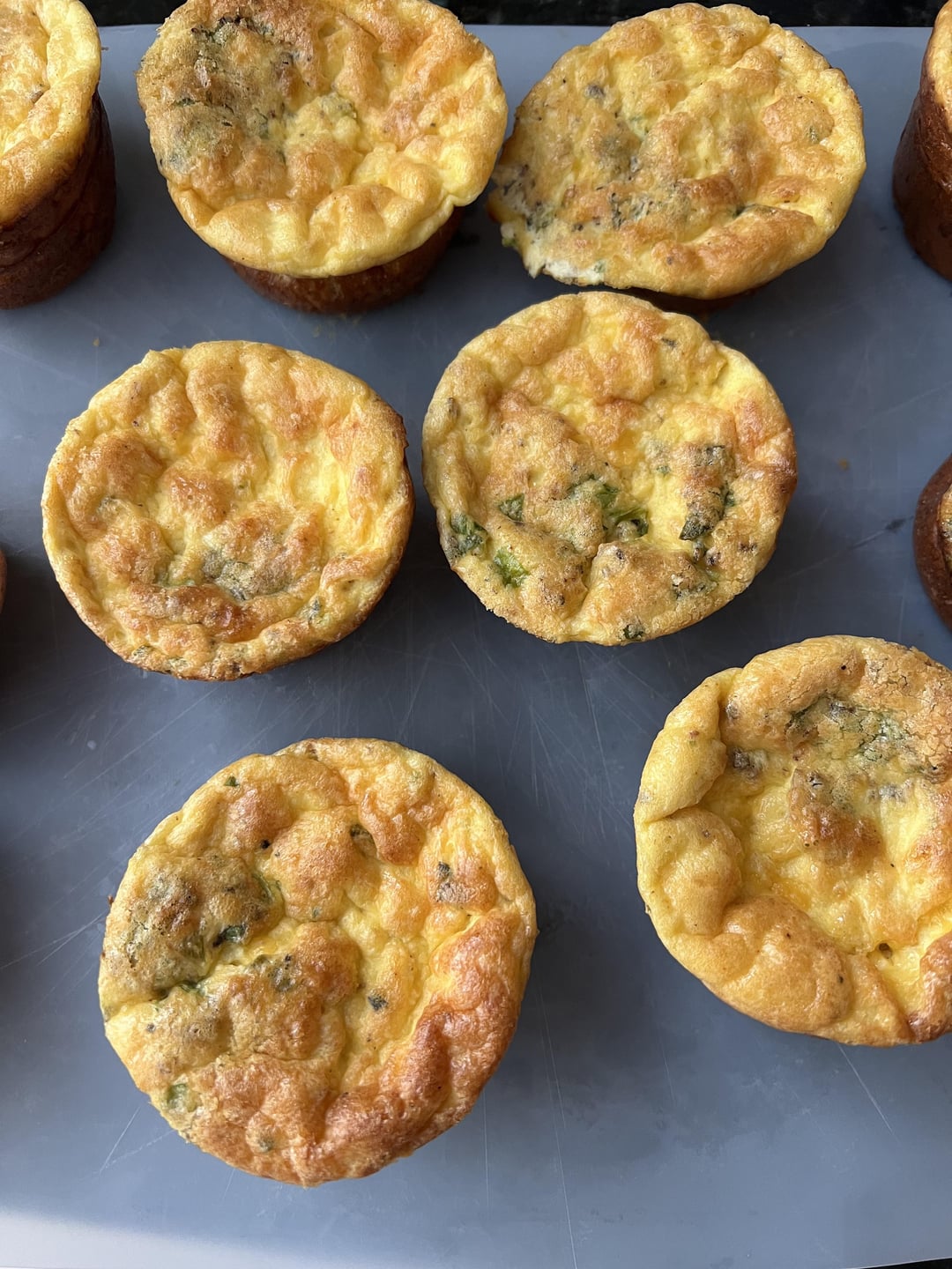 Preheat your oven to 350°. Using a 12 hole muffin sheet, spray each hole with non-stick cooking spray (I use olive oil). In a large bowl mix clams, old bay, pepper, cheese, minced green onions, and lemon juice then whisk in eggs and heavy cream. Using a ¼ cup measuring cup, scoop ¼ cup of the egg mixture into each muffin hole. Each muffin hole will be about ⅔ full. Cook until golden brown. Rest for 12 minutes and either enjoy or freeze for later use.
