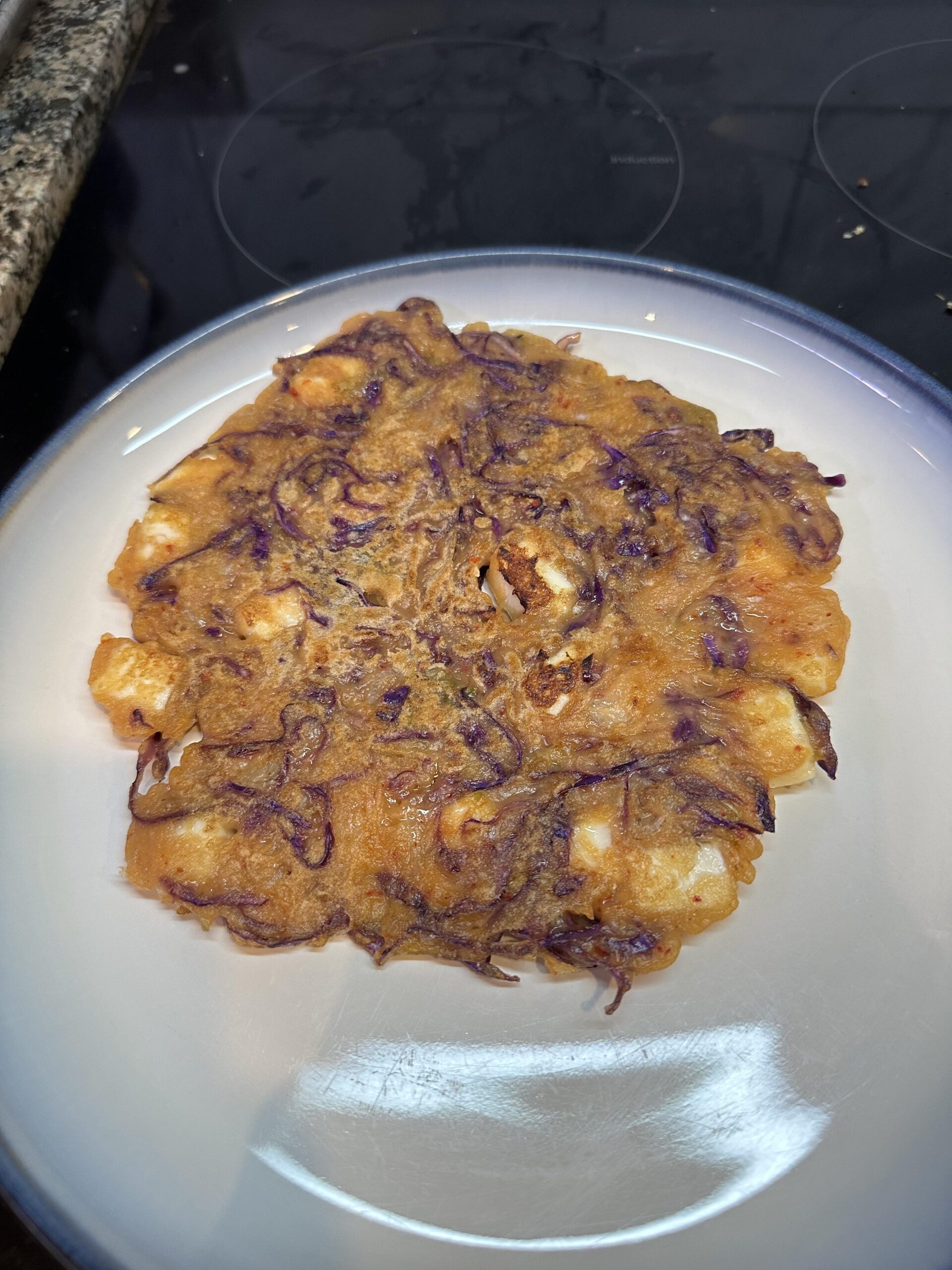 Ignore the purple cabbage… it’s the only cabbage I had and I was craving a pancake.