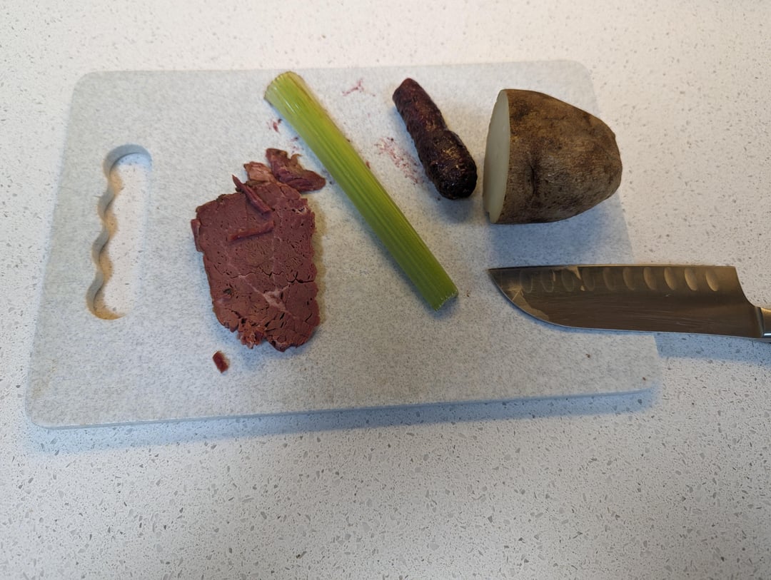 Paté + celery + turd + potato?
