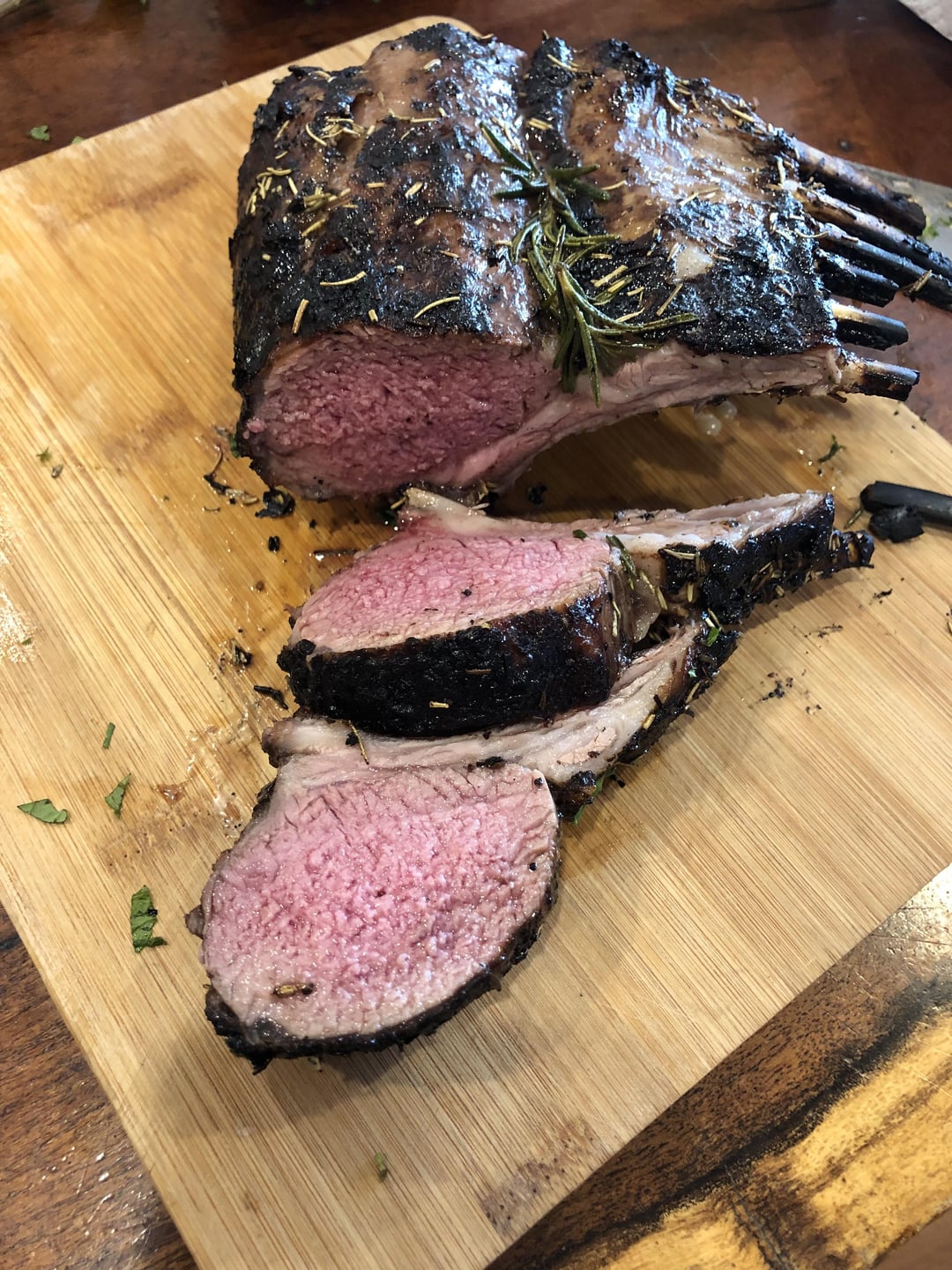 Gourmetanniemack 2 years ago Lamb rack, Ditalini with white beans and tomato, fresh pineapple and mint with poppy seed. Fresh bread from a new bakery. We take our old man neighbor dinner every night on paper:-)
