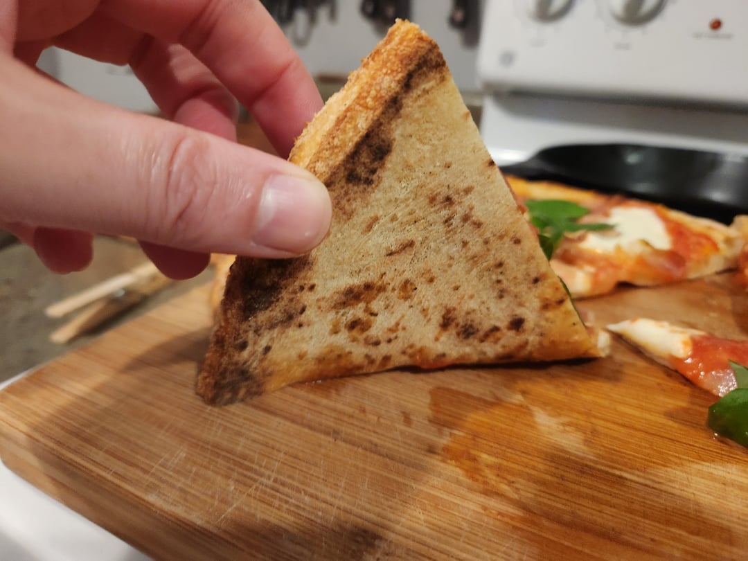 I keep struggling with oven deck temp. This was about 750F, which needed extra time to brown the bottom. Seems like any time I get closer to 800F, the bottom just burns.