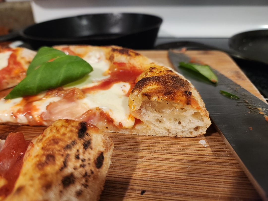 Dough is 65%, King Author 00, 24h cold ferment, 290grams each / 12″