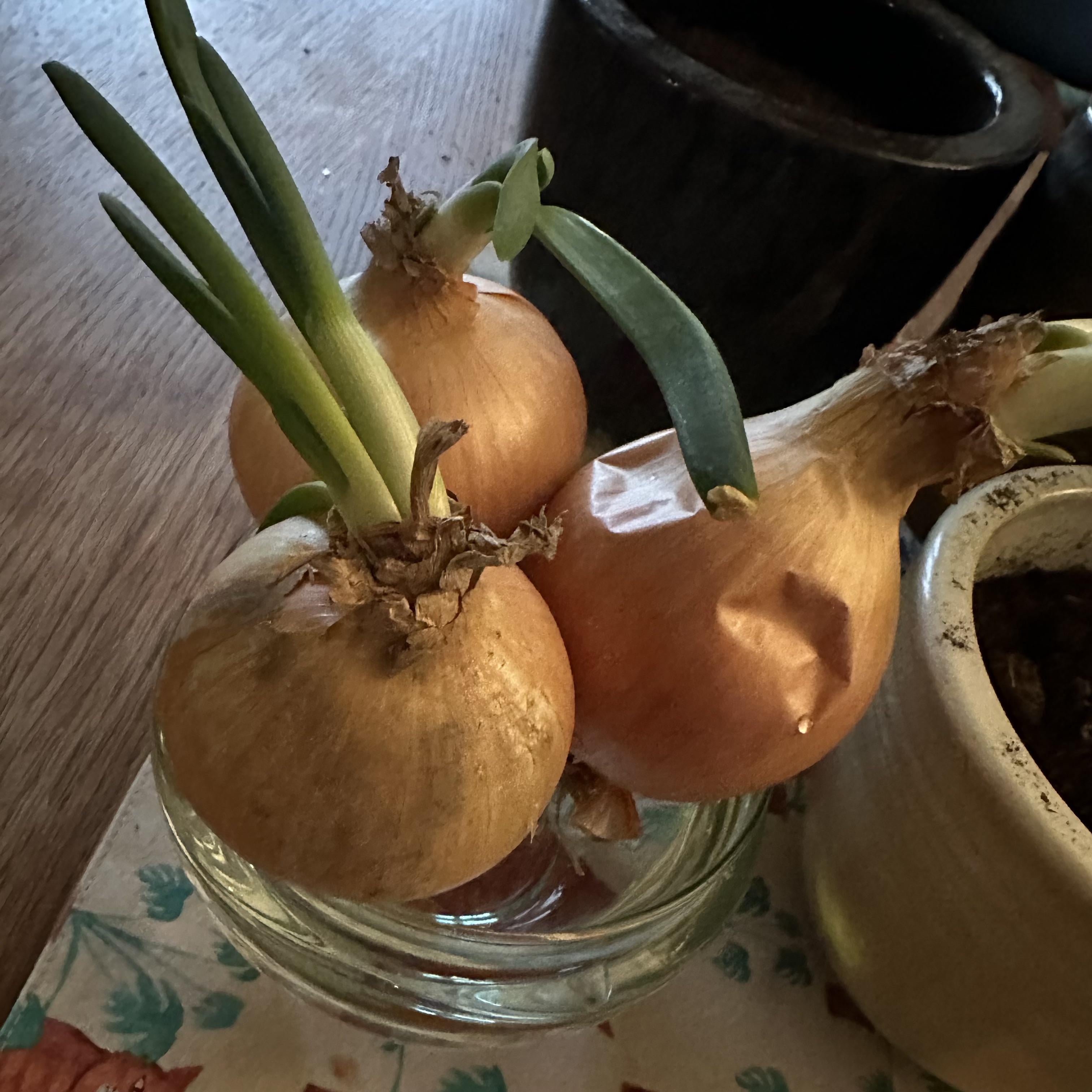 You’re really only gonna be able to grow these for the green parts. Onions (*Allium cepa*) cannot be grown from bulbs like other Alliums; garlic for example (*Allium sativum*).