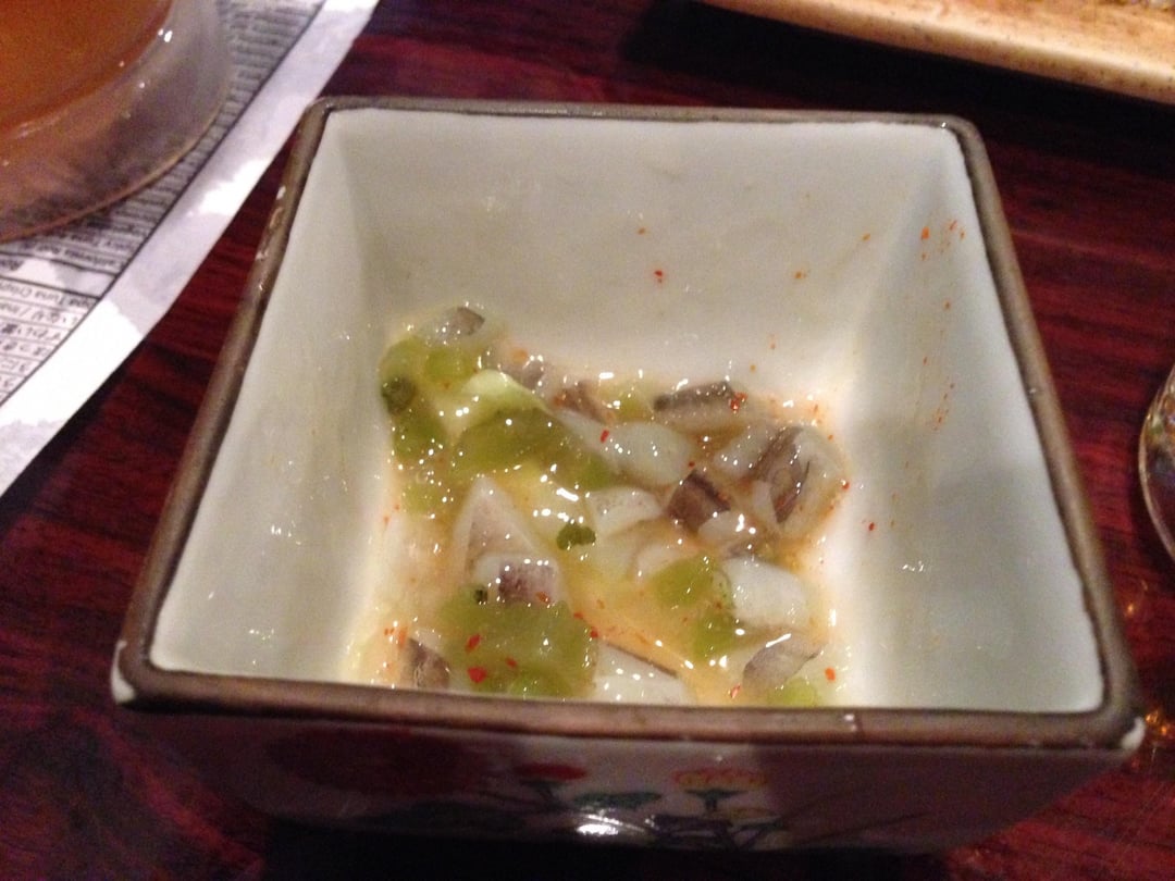 Sannakji(산낙지) or Tako (タコ) wasabi Tako is the Japanese idiom for octopus, while Sannakji means a live octopus in Korean. Can’t distinguish what the dish was actually.