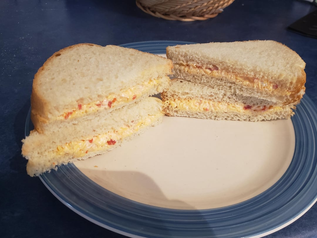 Pimento cheese on white bread. It's the correct amount, Mike.