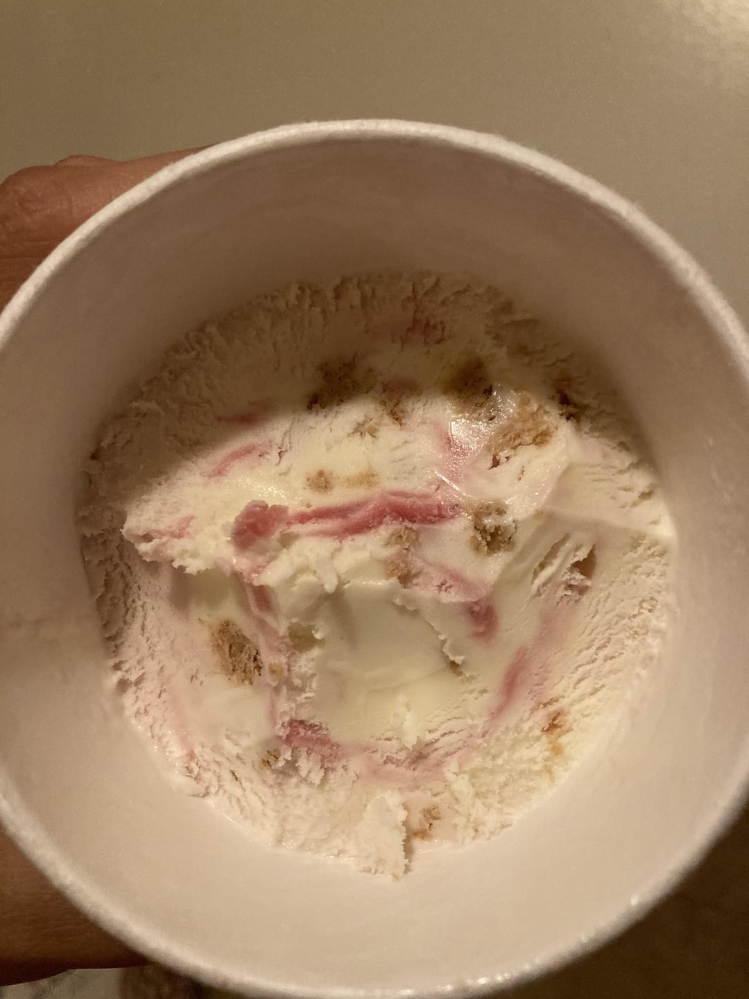 1st time having Häagen-Dazs is a long time. Pretty good flavor. A nice not overly sweet cheesecake ice cream base, the strawberry swirls were refreshing (sorry, trying to sound like a snob 🤓), and a good amount of crust pieces mix-ins.