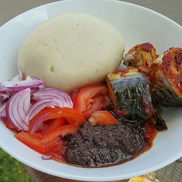 Banku (fermented corn and cassava dough), chopped onions, tomatoes, shito (hot black pepper sauce) and fried salmon – Teshie, Ghana by carlosx86-64 Write A CommentYou must be logged in to post a comment.