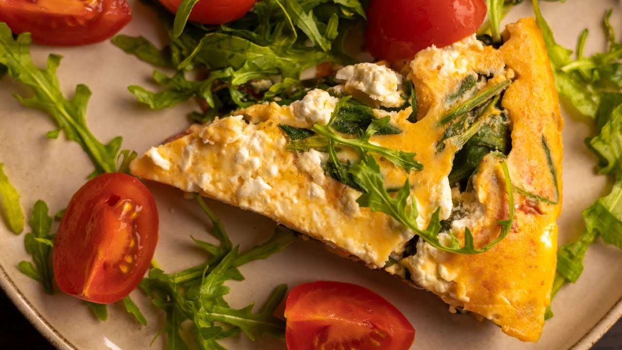 Pour the egg mixture over our veggies, sprinkle with 100g crumbled white cheese, close with a lid, and cook for about 20 minutes or until the eggs are set on low heat.
