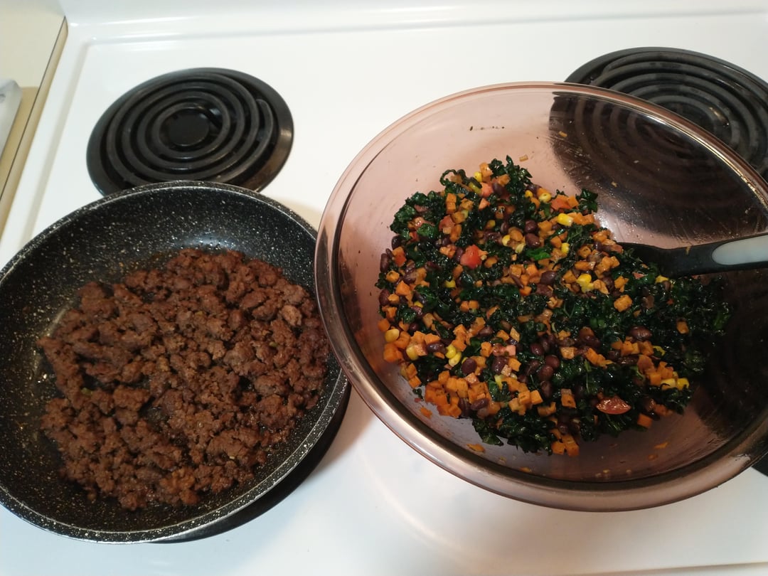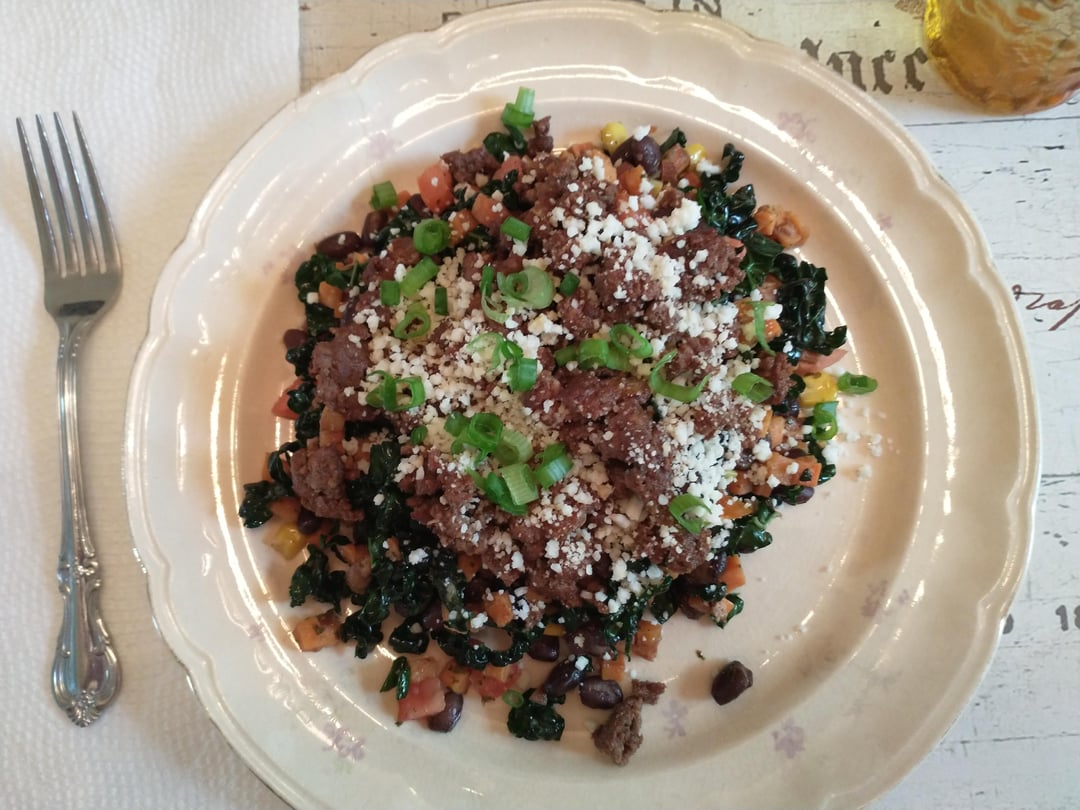 Salad included sweet potato, black beans, kale, corn, tomato, cotija, and cilantro cider vinaigrette. The GC meals are ENORMOUS. We had a third serving (leftovers!) of this meal, as well as the prior GC meal. And a lot of the GC meals require less prep (for example, the sweet potato in this dish came in a bag, pre-diced). Next week, back to Hello Fresh. Alternating weeks just for variety. 🙂