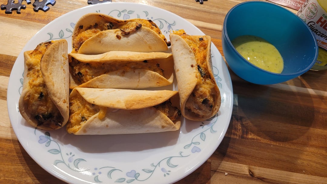 Mix everything and load into tortillas, air fry until crispy. Whole thing took me about 10 minutes prep time and 10 minutes cook time.
