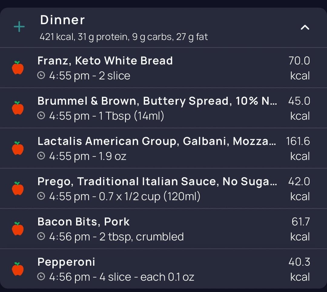 Low carb Tortilla work great too. Honestly, I’d recommend Pizza Bowls. I don’t know if there is a Marco’s near you (I think Papa John’s does this as well), but you can get the Pizza ingredients in a bowl minus crust. All the taste of greasy pizza place pie. Yeah, no crust. But I cut my losses.