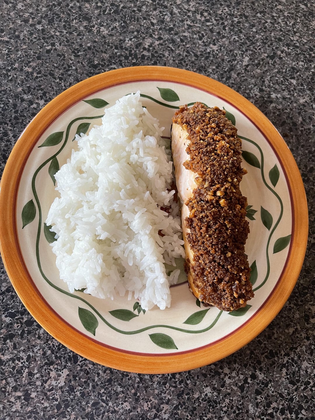 I don’t really care for walnuts (story for another time) so I made sure to crush them real good. Sometimes I’m lazy and I hate the step of cooking the bread crumbs but this worked out so well! It really did give a good crunchy crust to the salmon, but not overpowering. I also enjoyed the sauce (yogurt, sour cream, lemon juice) on top of the salmon and under the crumbs.