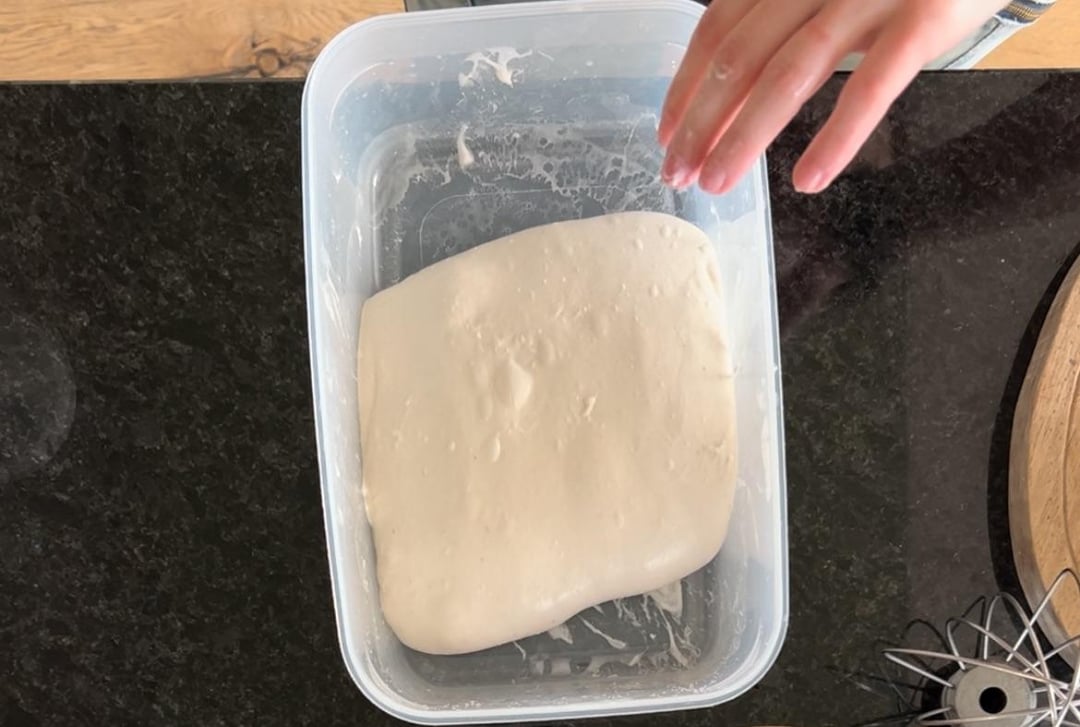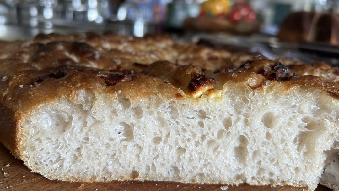 Used a mix of 500gr pizza flour and 500gr water, 100gr sourdough starter, 20gr olive oil and 10gr salt. 3 sets of coil folds in the first 90 minutes, then a 2 hour rest and one night in the fridge. Another two hours to get the dough to room temp, and a bake at 230°C for 30 minutes. I’m so proud the dough was actually workable! I’ve had a more open crumb and bigger bubbles with a hydration at about 80%, but I’m super satisfied with this result.
