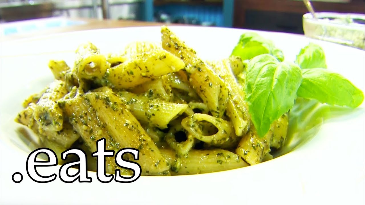 As simple as simple can be! Penne pasta coated in freshly made basil pesto – serve and share! And if you’ve gotten hungry just by watching this video, try out the recipe below and let us know how it tasted!