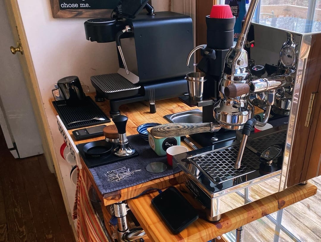 I decided to add an extension to my coffee cart to allow a bit more room for my second machine. The DE1, is always on the cart and I swap between a few other small levers, up now is the Vectis. Although it took longer than I thought, I have finally found my love for the Vectis. It turns out a basket change and simply trying a few different shot recipes did the trick. I find the more traditional 1:2 30 second shot is best for me and this machine. I’m sure others mileage will vary 😊