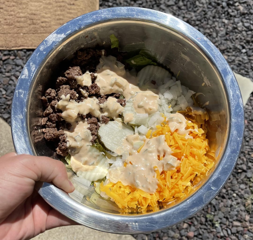 1. Start by making the dressing. Mix all of the Big Mac dressing ingredients in a small bowl, and set aside.