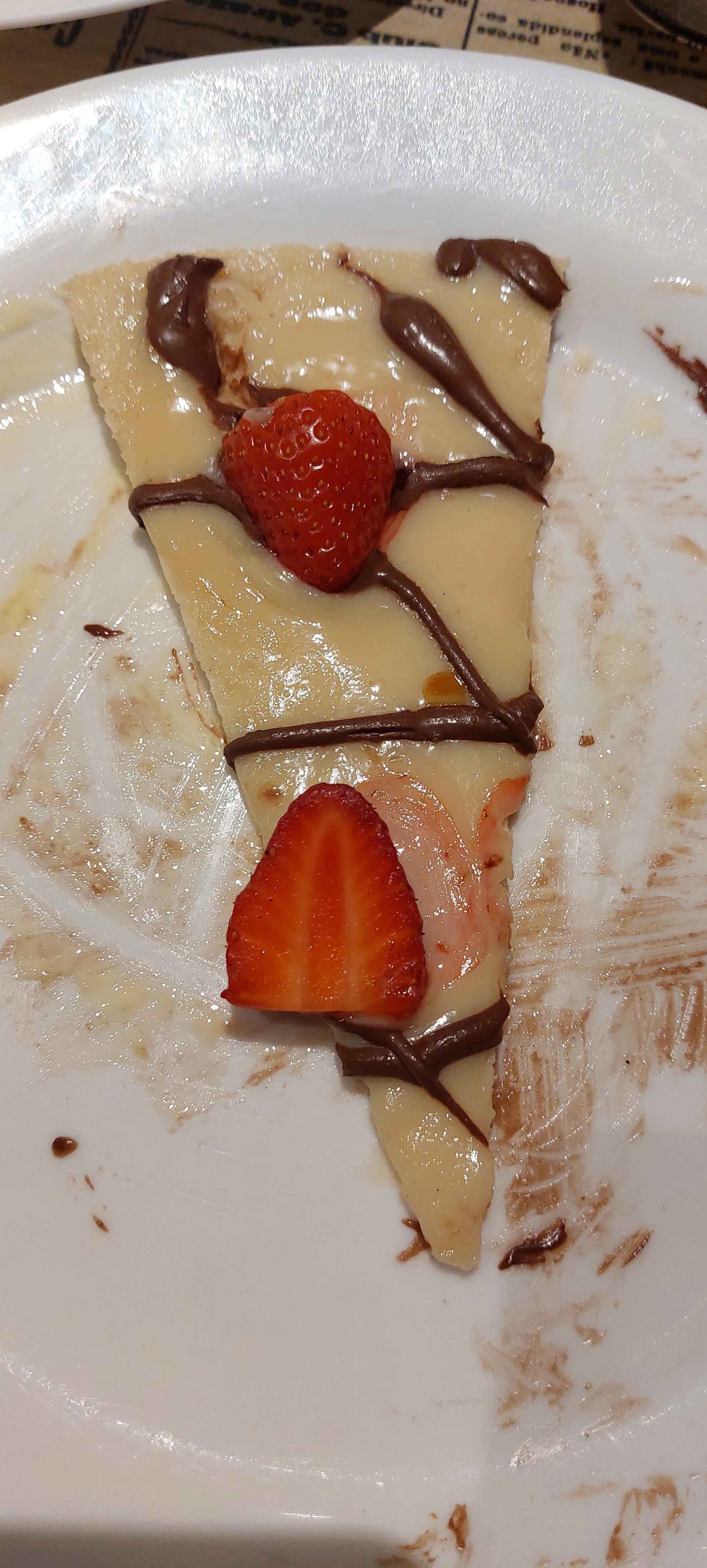 Desert pizza sounds crazy at first because your brain instinctually recognises it as a savoury food, but the only thing that makes it ‘pizza’ is the disc of dough at the base, which does pair nicely with both sweet and savoury toppings. I bet the slice in the pic would be delicious, crime or nay.