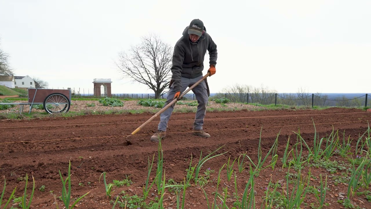 Monticello vegetable gardeners sowing spotted leppo lettuce, bloomsdale spinach, leeks, and weeding between rows of garlic. 90 minutes ASMR.