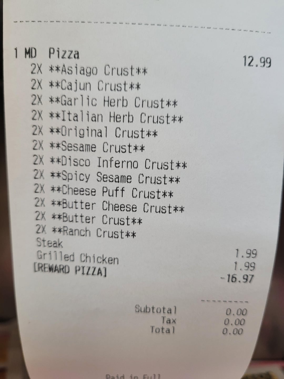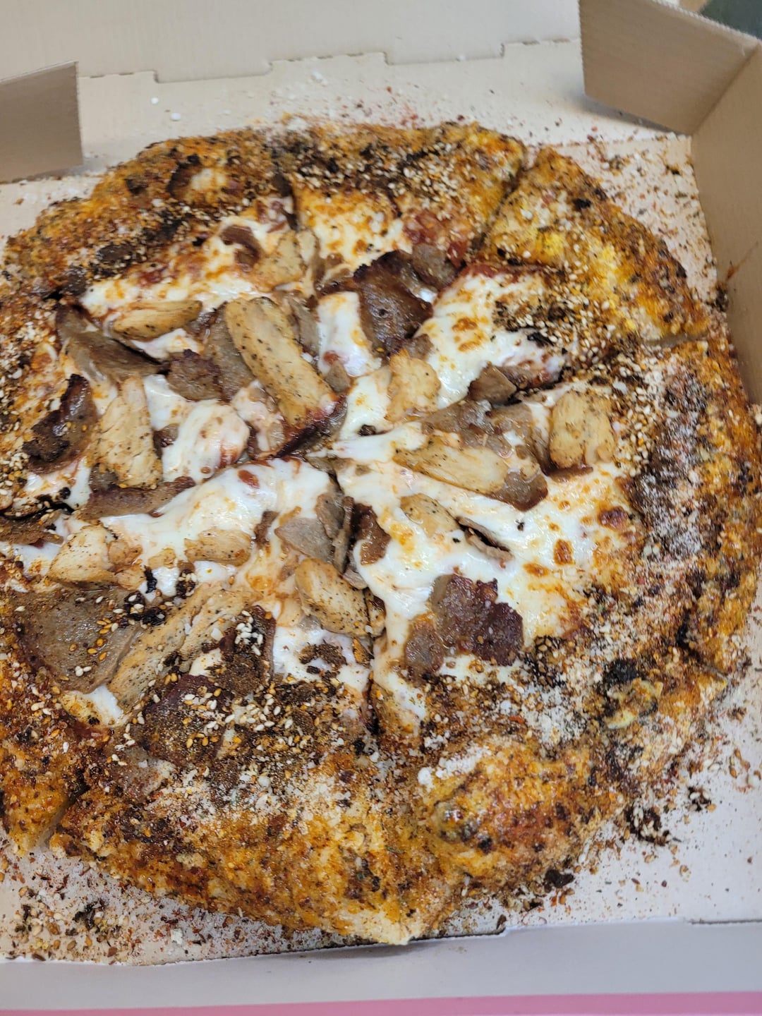 Holy shit that is like my dream pizza, there is one place around here that I always ask for extra crest flavoring and they never hardly ever put any on I would pay like 30 bucks extra for that amount of topping