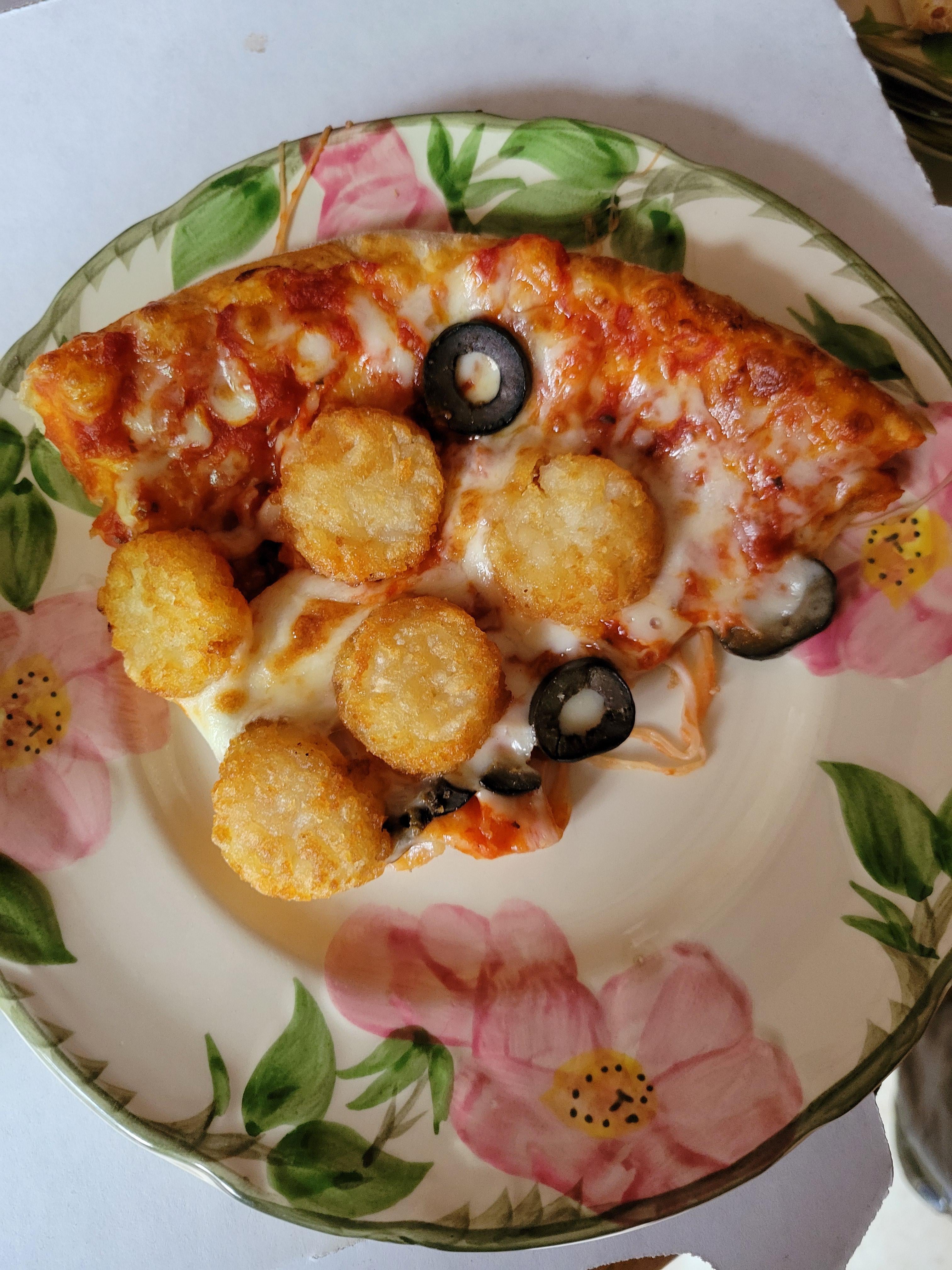 [I ate] Tater tot and black olive pizzaby Sam-the-Lion 2 Comments SlideItIn100 2 years ago I’m intrigued OmegaPryme 2 years ago Smashing drunk or sober.Write A CommentYou must be logged in to post a comment.