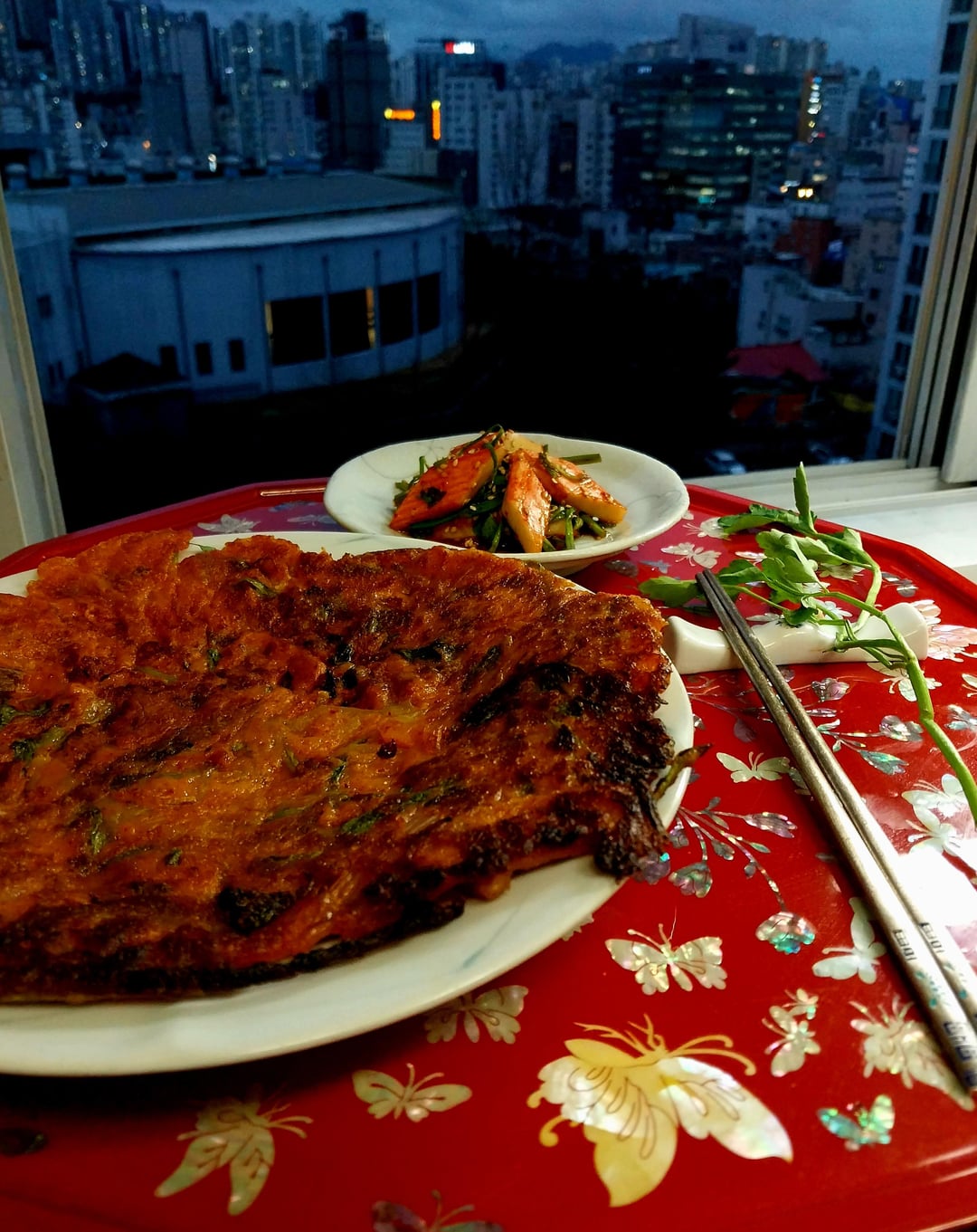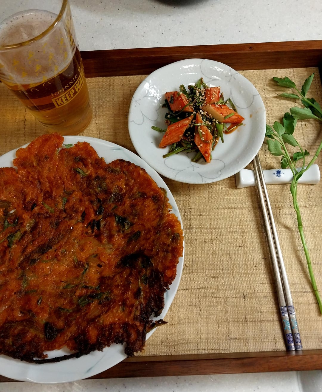In Korea, we eat pancakes on rainy days. Some people say that it is because the sound of rain is like the sound of oil splashing when frying pancakes, but I think that in an agricultural society, when it rains, it is difficult to engage in outdoor activities, and if you spend time bored inside the house, you may want to eat something different. In the past, cooking oil was scarce, so cooking with oil was only used on special occasions.