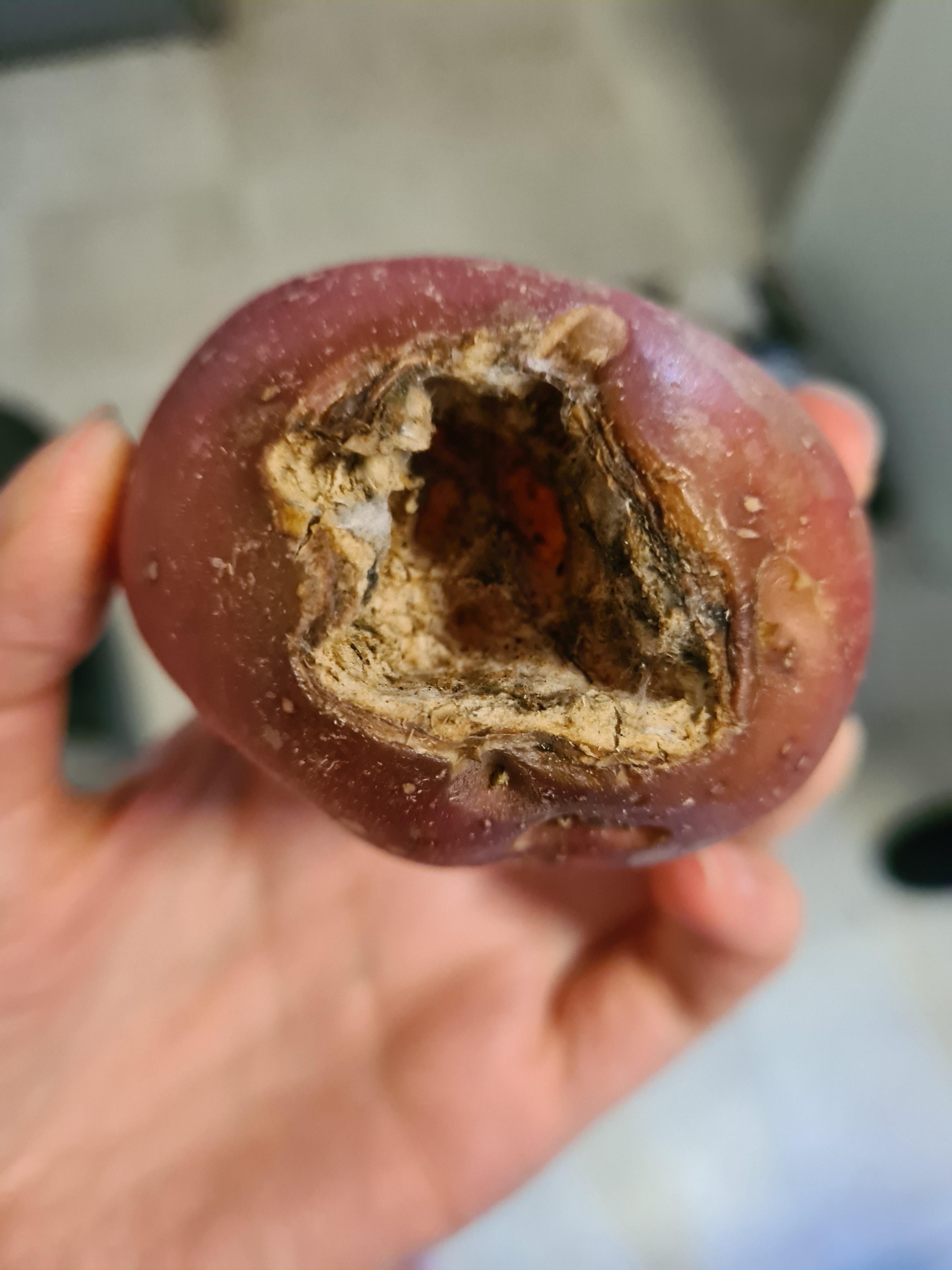 I understand some ingredients making it into the box that are less than perfect but how the Hell was this potato with a gaping hole taking up half the potato put into my box? Is it people or machinery packing the boxes? By the way what would have caused this? Should I report this to the food safety department of HelloFresh?