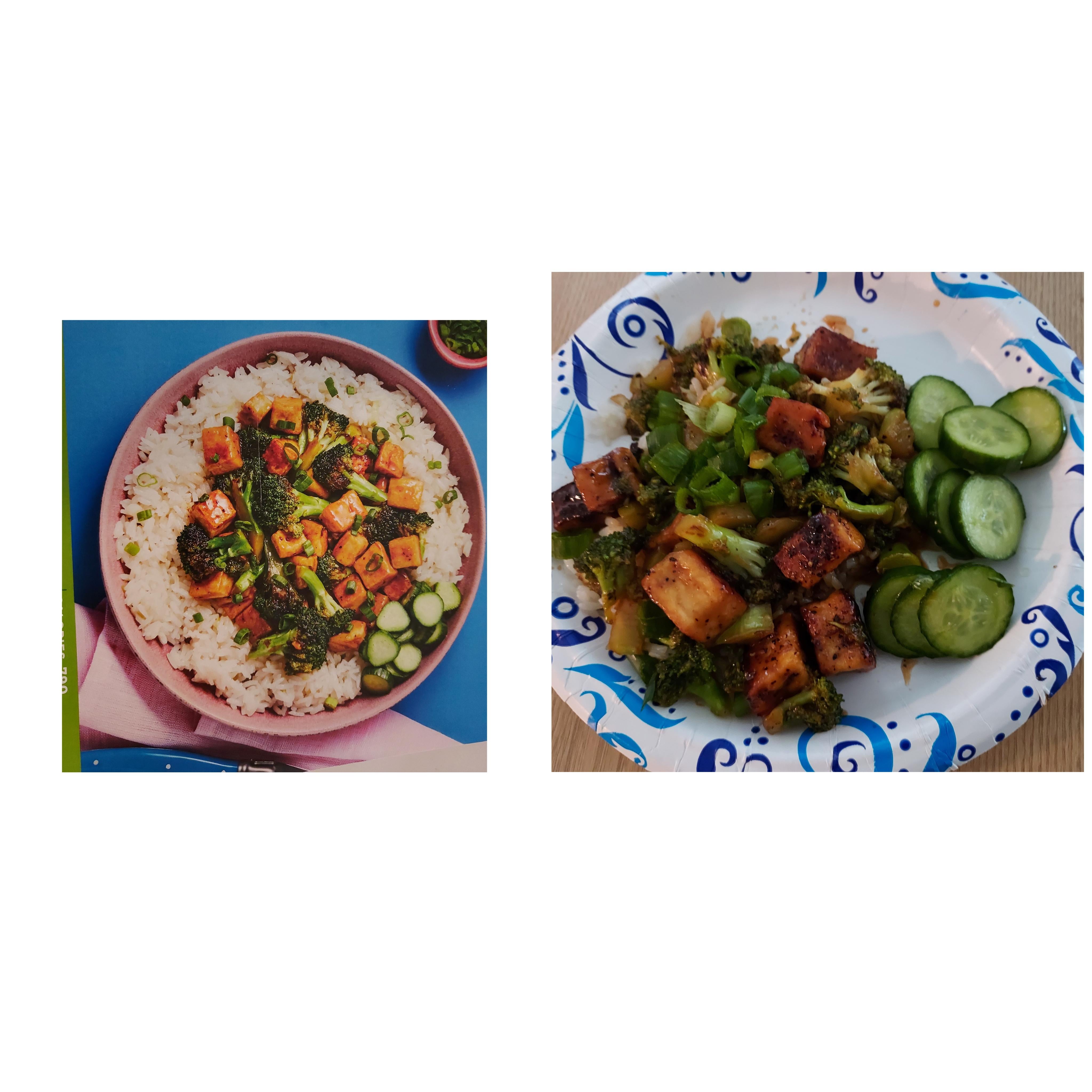 I have had Hello Fresh for two weeks, have not been disappointed once. I am vegan and am so happy with the choice, sometimes yes I have to make a substitution. This is my favorite meal by far. The sweet and savory tofu bowl! And the portion sizes are huge, I don't like a lot of rice, but this still was less than half for a 2 person meal. Yes I am using a paper plate, don't come for me lol, the tofu is perfectly crispy, its a lil sweet with a hint of spicy not much at all!