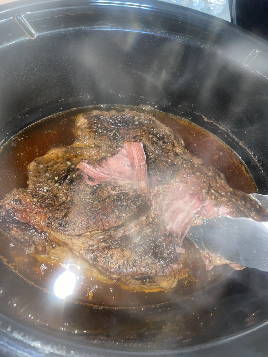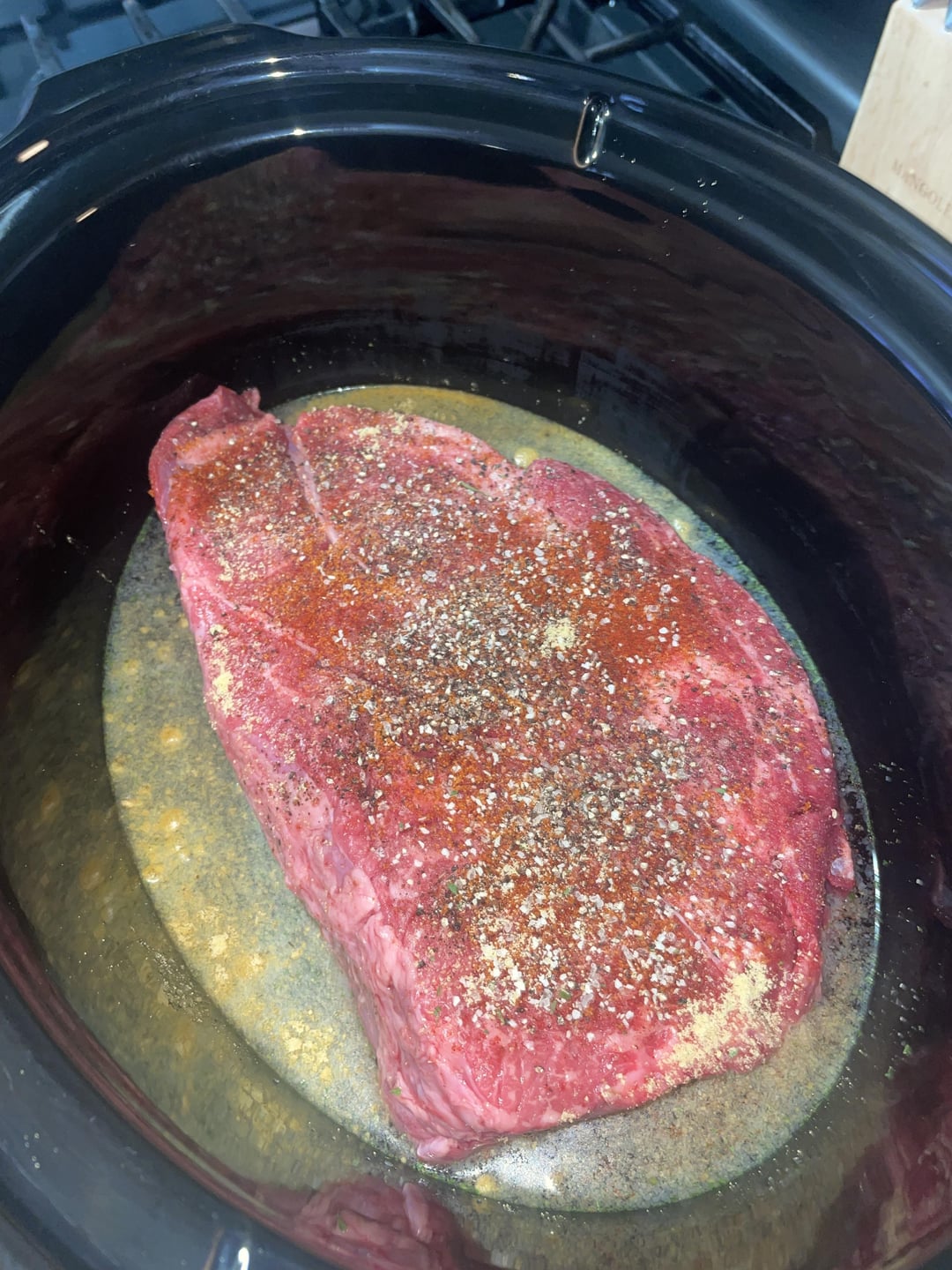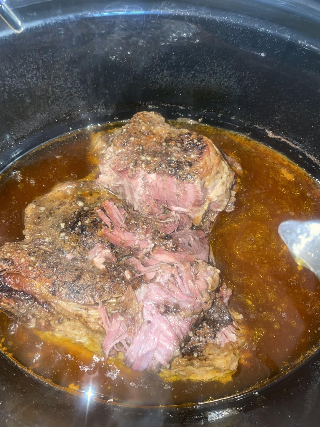 Foreign_Ability4307 2 years ago 3 lb chuck roast, low for 10 hours. Seasoned with salt, pepper, garlic, onion, paprika.