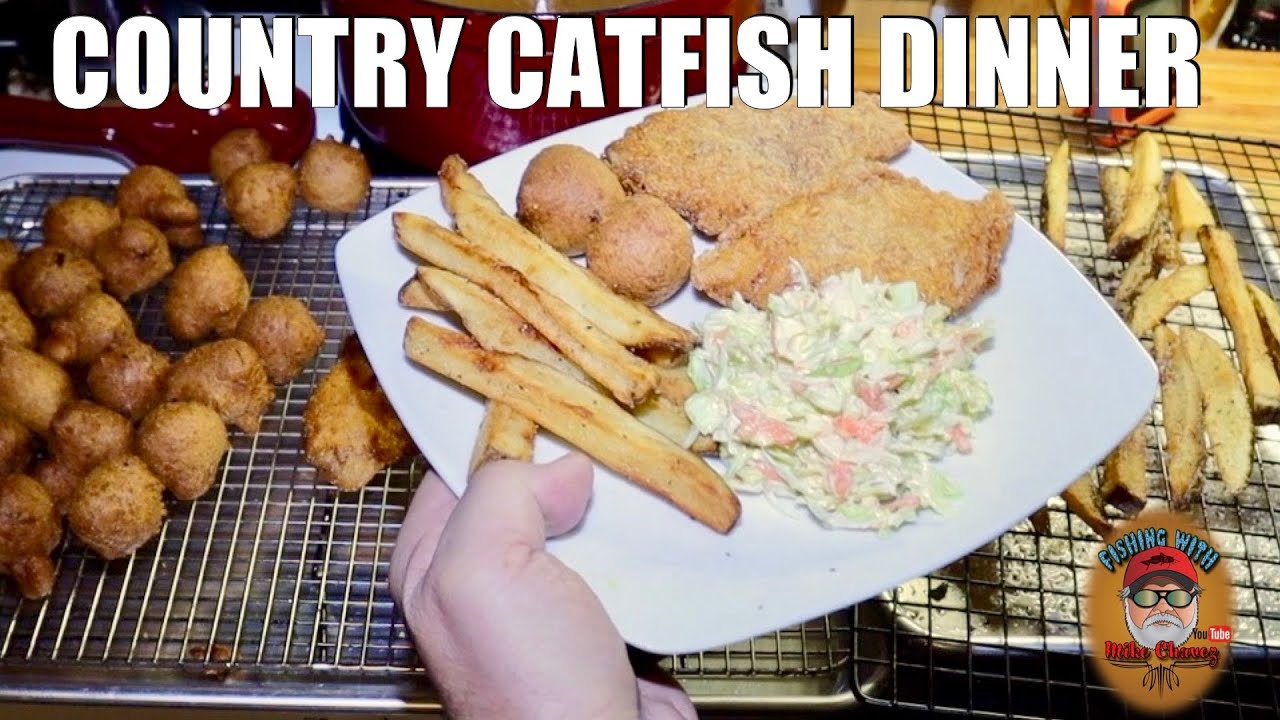 All right get a couple pieces of catfish couple puppies few fries nice creamy Co La there we go y’all country catfish dinner right there let’s Eat hey everybody Mike Chavez here once again welcome back to my channel if you’re new here welcome all right y’all today full catfish dinner catfish klaa hush puppies and french fries all homemade okay no Frozen stuff so I’m going to go back here let’s get this coal sace started cuz I got to