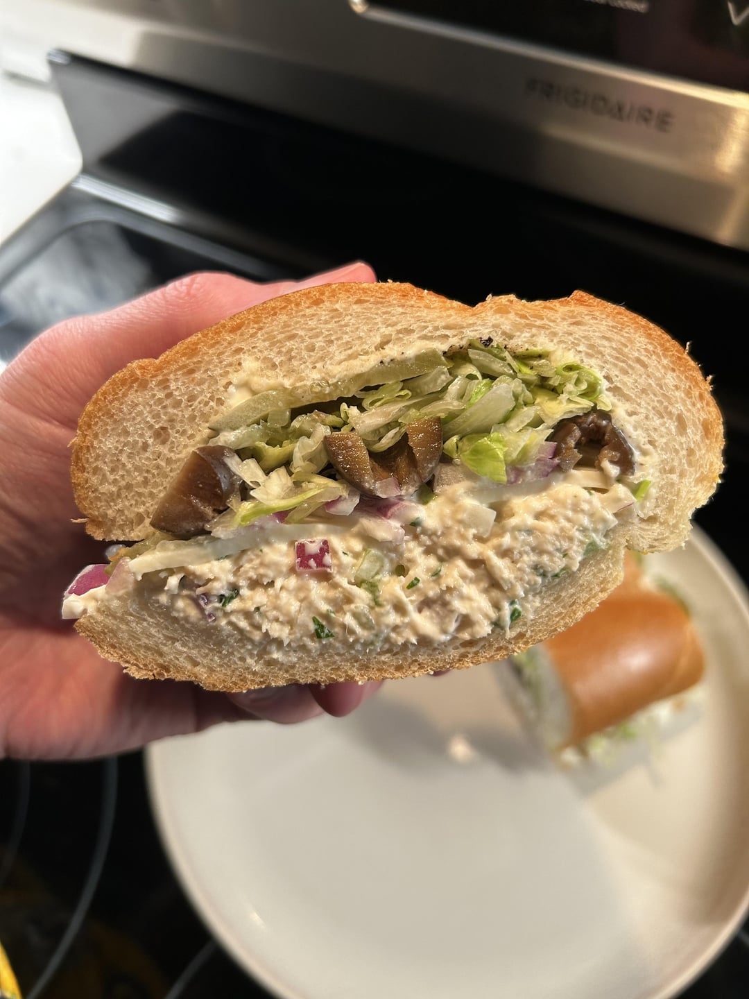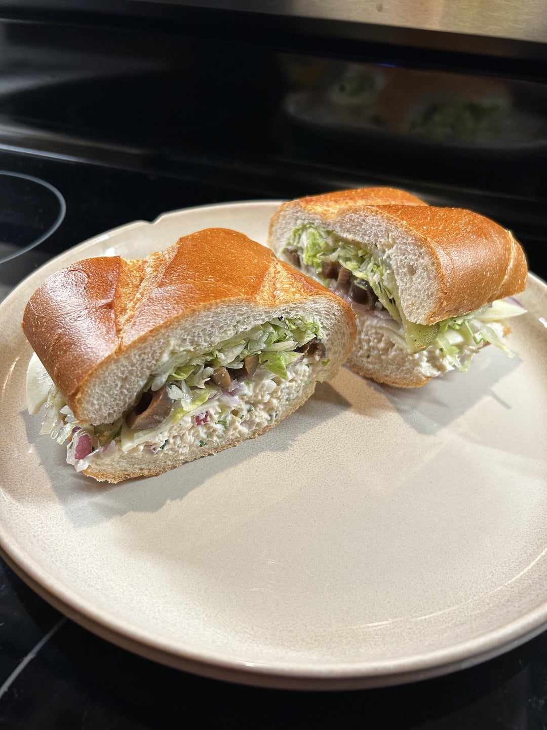 Chicken salad, provolone, red onion, black olives, dill pickles, lettuce, mayo on a French loaf. by indexbill Write A CommentYou must be logged in to post a comment.