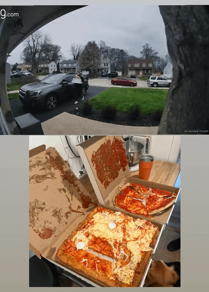 I delivered cheese steaks back in the day. Had this happen right outside the office I was delivering to. Except I yard saled about 10 feet down some stairs and broke my clavicle. It was like 20 steaks. I called my contact, and said, “So uh, there’s been a mishap with your order. I’m out by the stairs.”