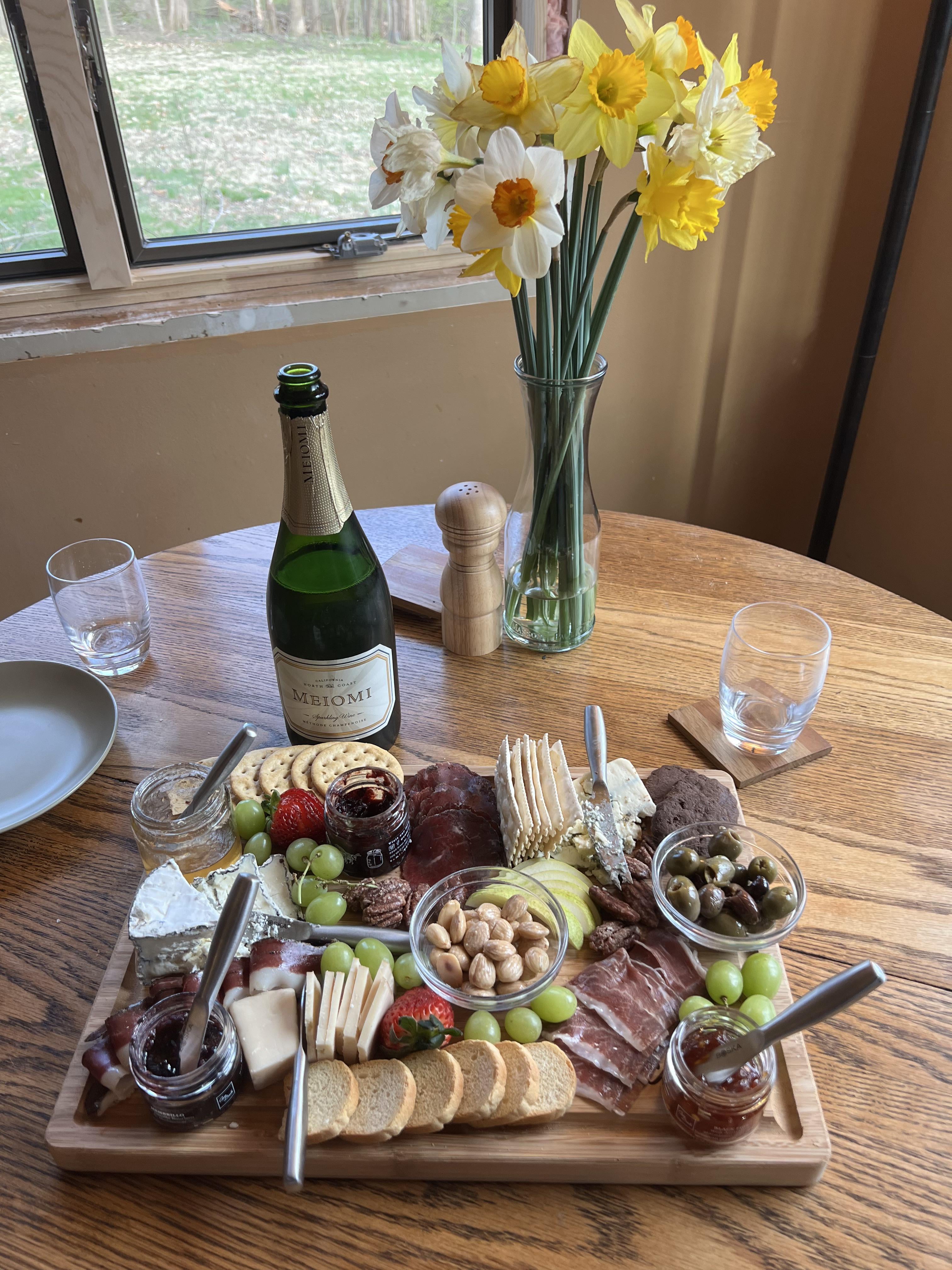 On a food shopping excursion to a bigger town an hour away from home, I went to a meat market I’d never been to before. And they had charcuterie. And oh look! cheese. And accoutrements. And I had a cooler full of ice in the car. So I stopped worrying about what to cook for dinner when I got home.