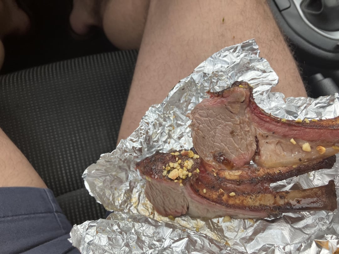 Lamb chops were better this time than the last time I had em. They had more smoke on em, whereas they didn’t really have any the previous time.