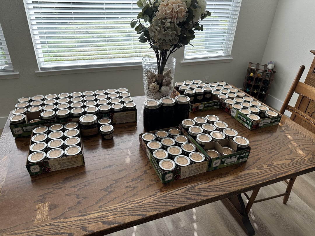 50# ended up at about 1 dozen jars. Other than a test batch when these were picked last season, this is my first time canning.